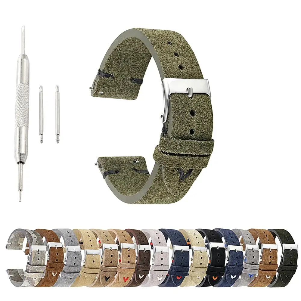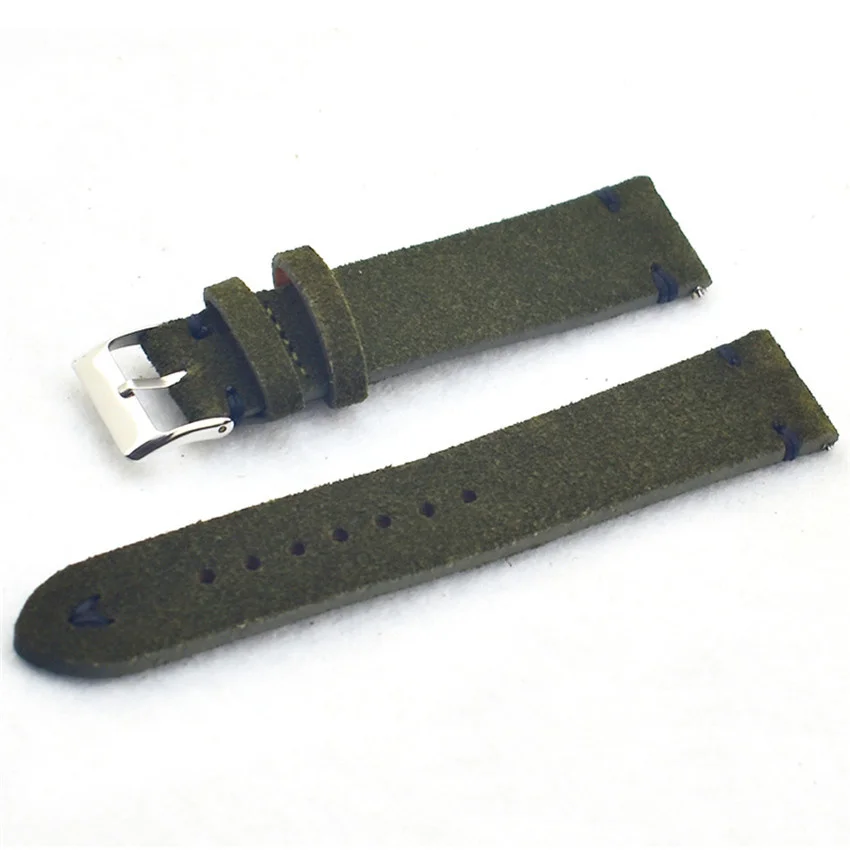 Модный замшевый кожаный ремешок ручной работы в стиле ретро, зеленый наручный ремень, ремешки для часов 18 мм 20 мм 22 мм, новинка, лидер продаж для мужчин и женщин