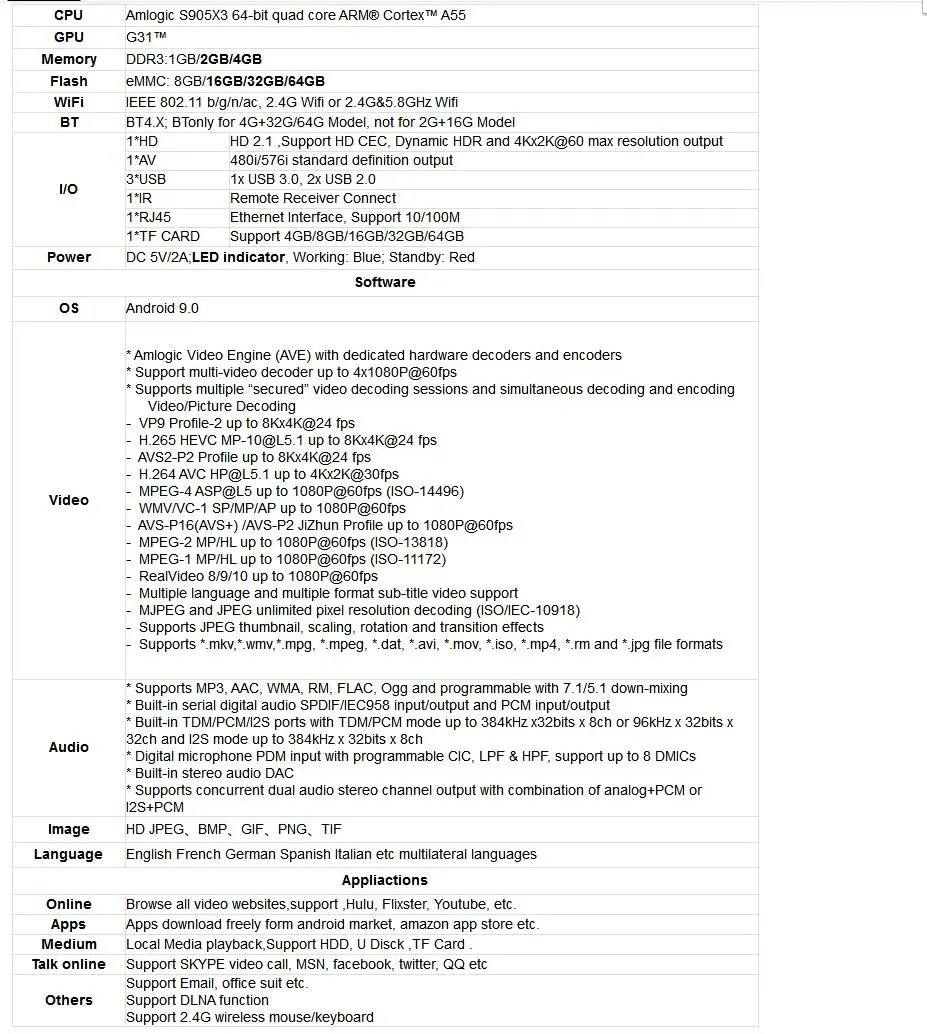 Быстрая доставка, быстрый ответ от продавца, хорошая упаковка, хороший продукт. Coreelec 9.2.5 работает как очарование с последним выпуском KODI! Airmouse также хорош, может быть лучше, менее отзывчивым, но хорошо по цене.