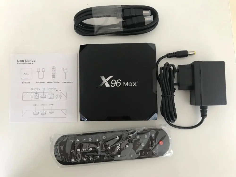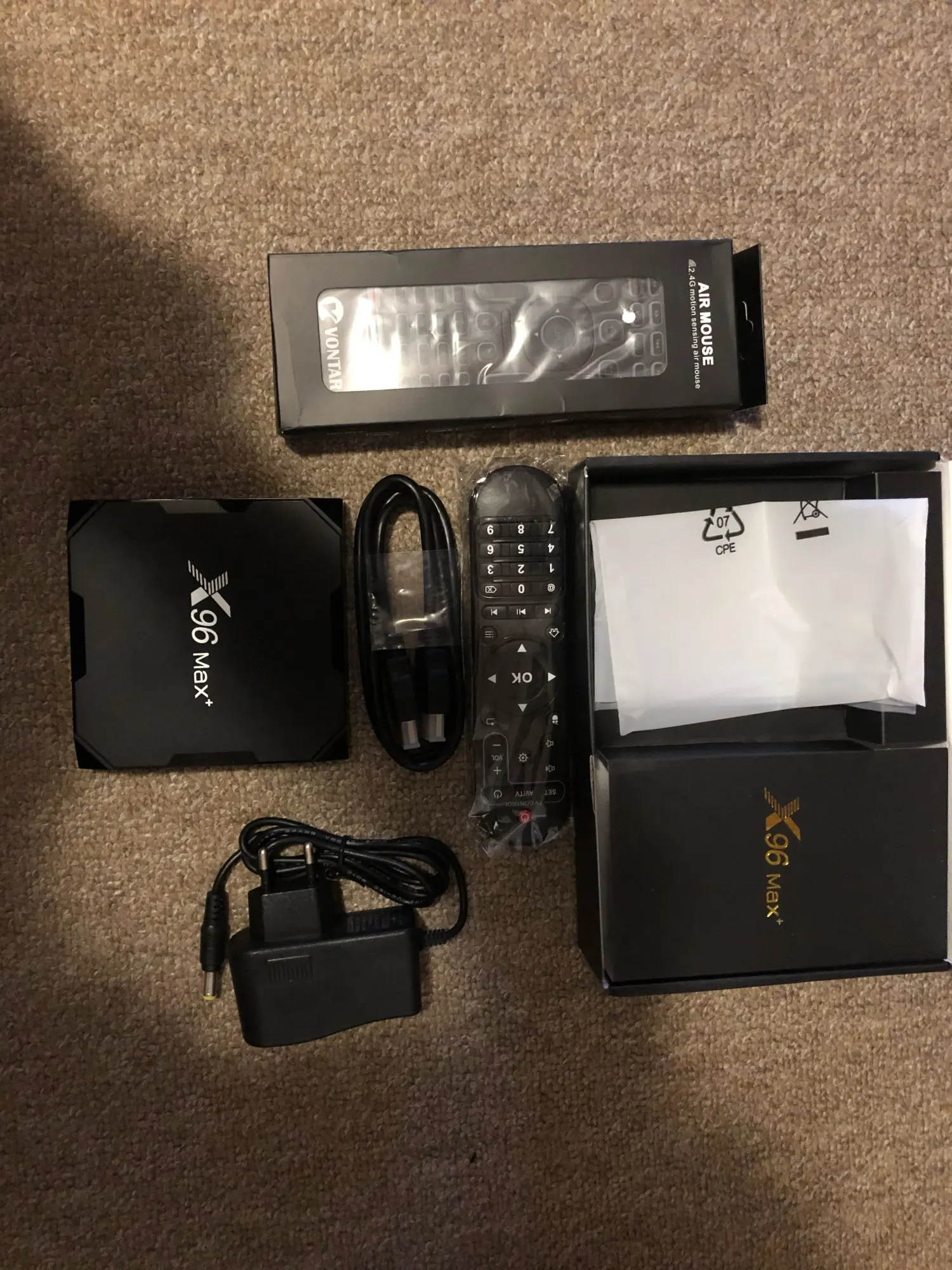 Доставка до адреса в Москве курьером заняла 4 дня. Упаковано хорошо, всё в целости. Приставка маленькая, пульты тоже компактные, в комплекте кабель HDMI. Версия X96Max+2. Всё работает, любителям перепрошить, добавить охлаждения и тп - на форум 4pda, там целый раздел по этой приставке))