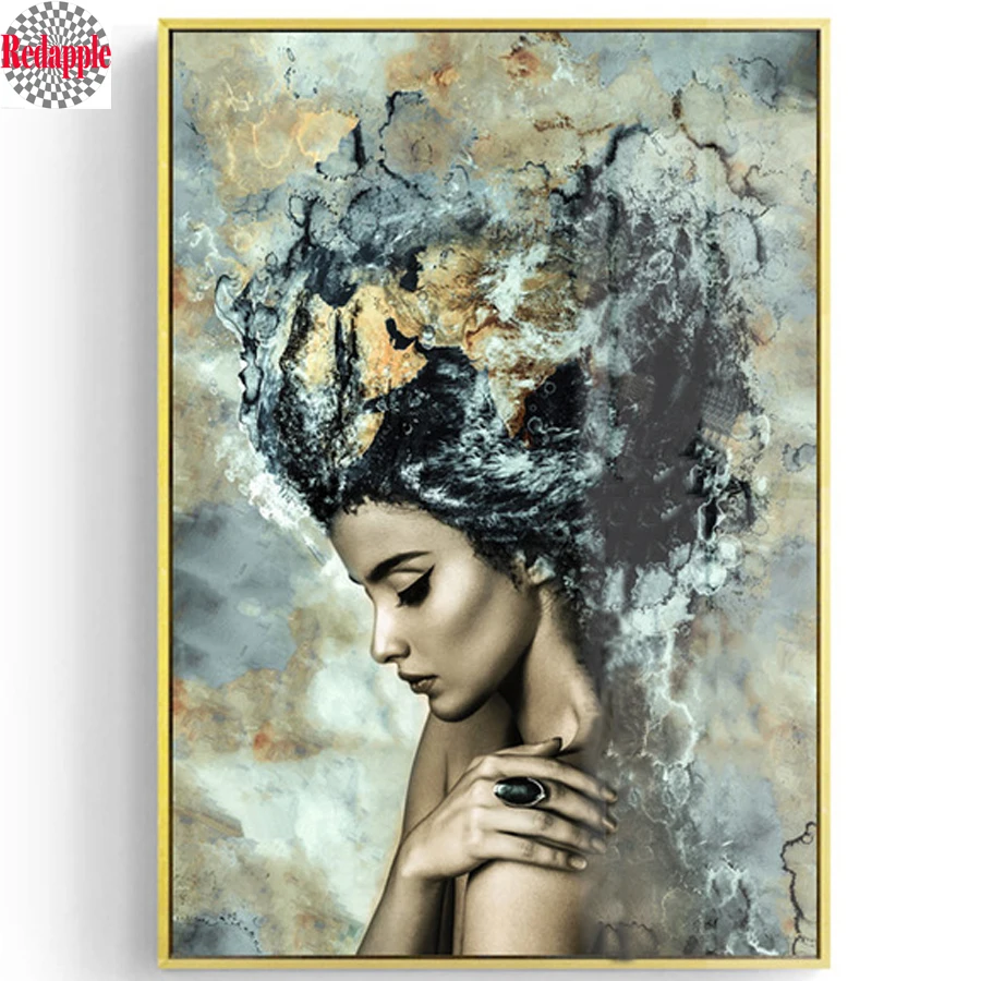 Полноразмерная Алмазная 5D картина сделай сам, абстрактная девушка, 3d вышивка, фантазия, лицо, вышивка крестиком стразы, мозаика, домашний декор, искусство