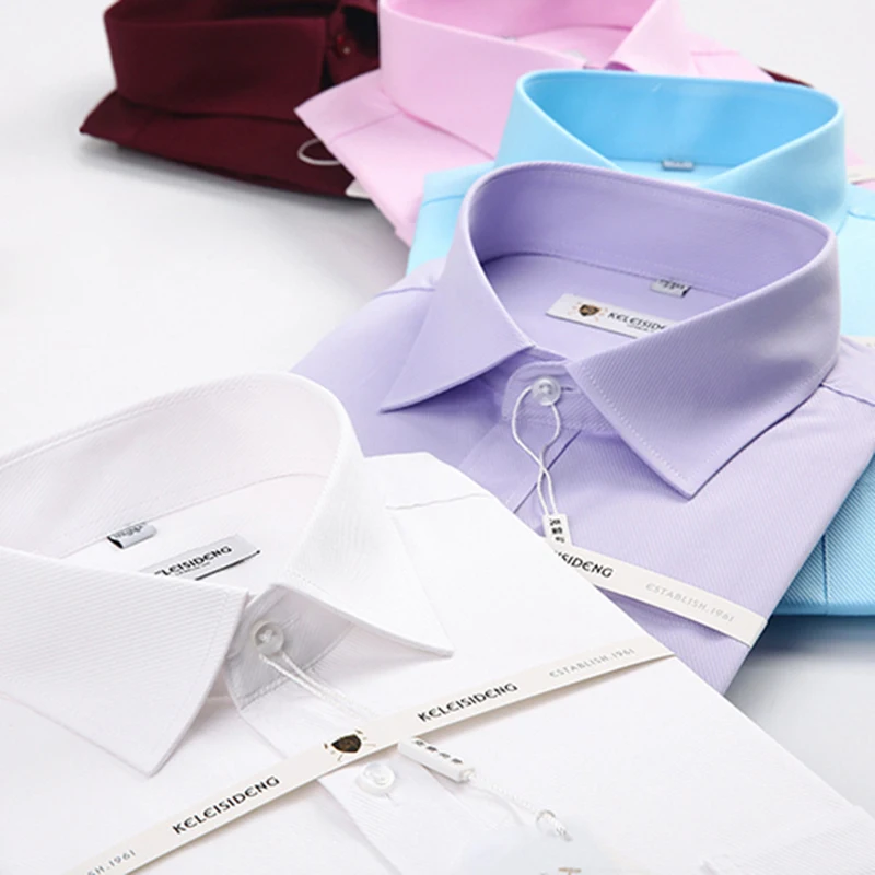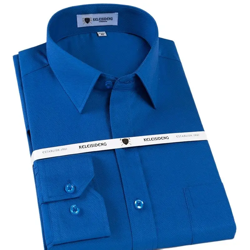 Мужская хлопковая Классическая рубашка, однотонная саржевая деловая рубашка с длинными рукавами и воротником-стойкой, одежда для мужчин 2020