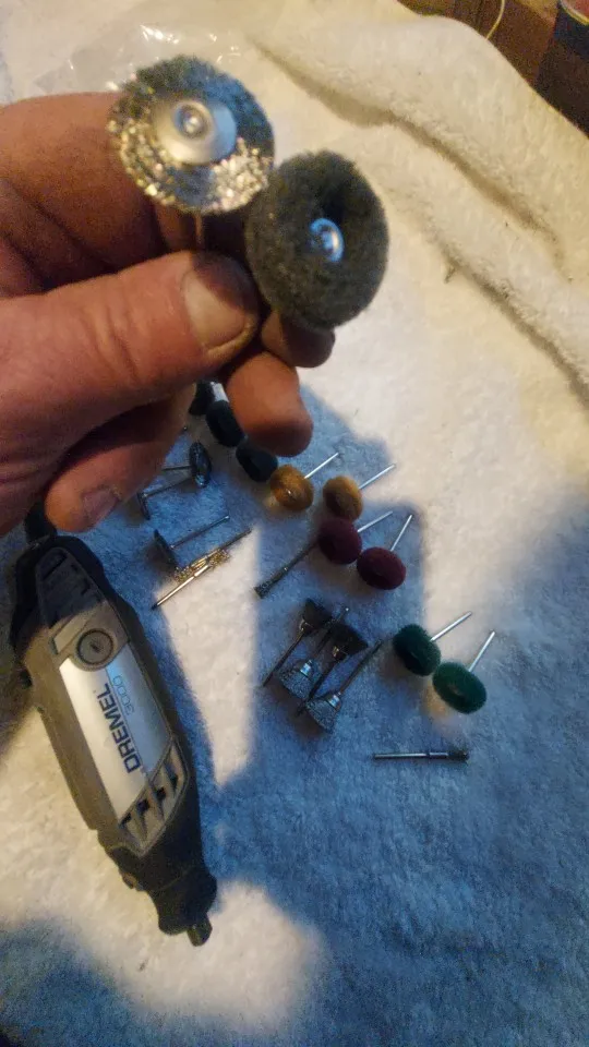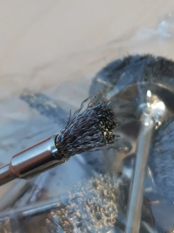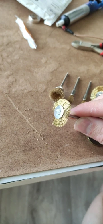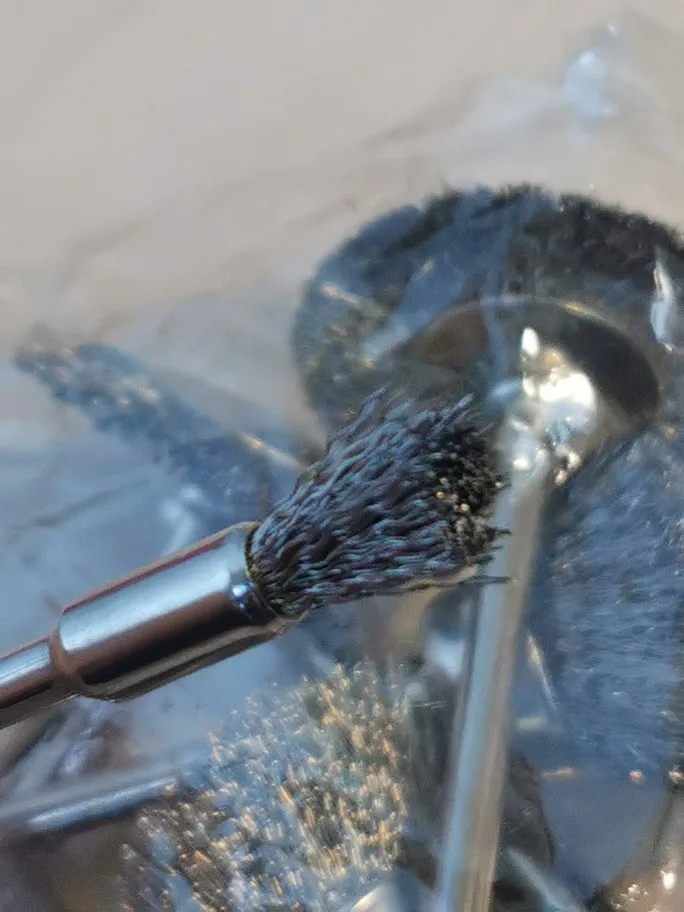 Здравствуйте! испытывал щеточки на тисках, понравилась (солнышко) на втором фото спустя 15 минут работы (примерно 5 тыщ оборотов). Вторая (чашка) прожила минуты три, и очищала хуже. Третья (кисточка) ваще не очищала, потому и самая живучая:-)