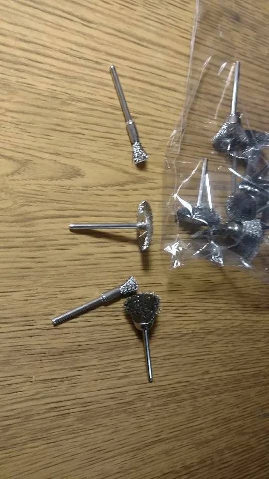 Супер маленькие кисти для dremel диаметр и хороший и прочность по цене и разумной я попробовал их для небольших никелевых работ и доставки (быстро) вид, откуда он приходит, не может сказать лучше (я хорошо работал для небольших работ) не нужно было связываться с продавцом ..