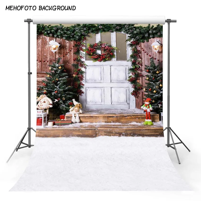 Фотофон Mehofond зима Рождество Снежная елка дом деревянный пол ребенок портрет Декор фотография Фон Фотостудия Фотофон