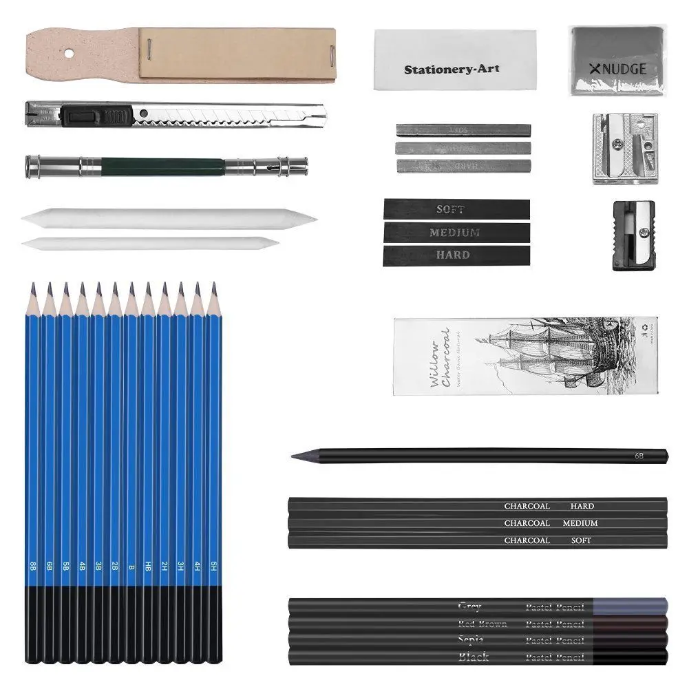 33 шт. набор карандашей для набросков и рисования графитовые палочки для древесного угля ластики Чехол Набор Эскиз канцелярских товаров принадлежности для рисования