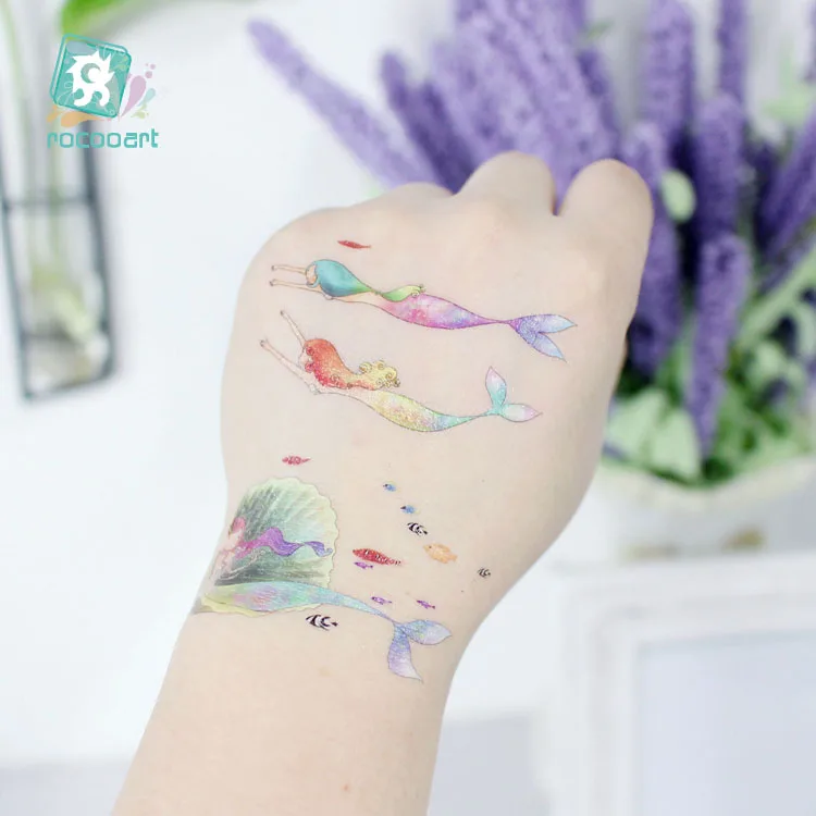 Rocooart новая временная татуировка, мультфильм, Русалка, поддельная татуировка, красочная, дети, подарок, животные океана, флэш-тату руки