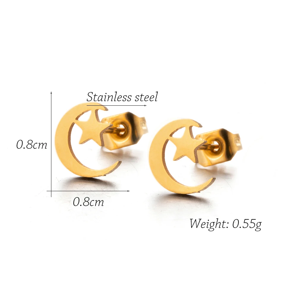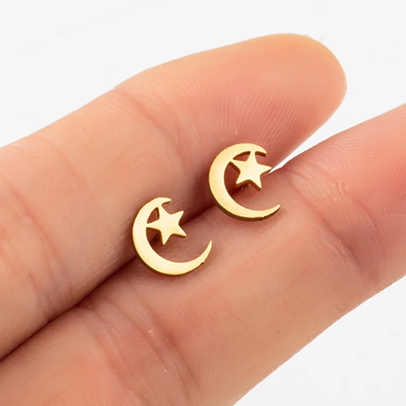 Серьги-гвоздики со звездами и луной, модные серьги-гвоздики из нержавеющей стали золотистого цвета, женские очаровательные ювелирные аксессуары 2020