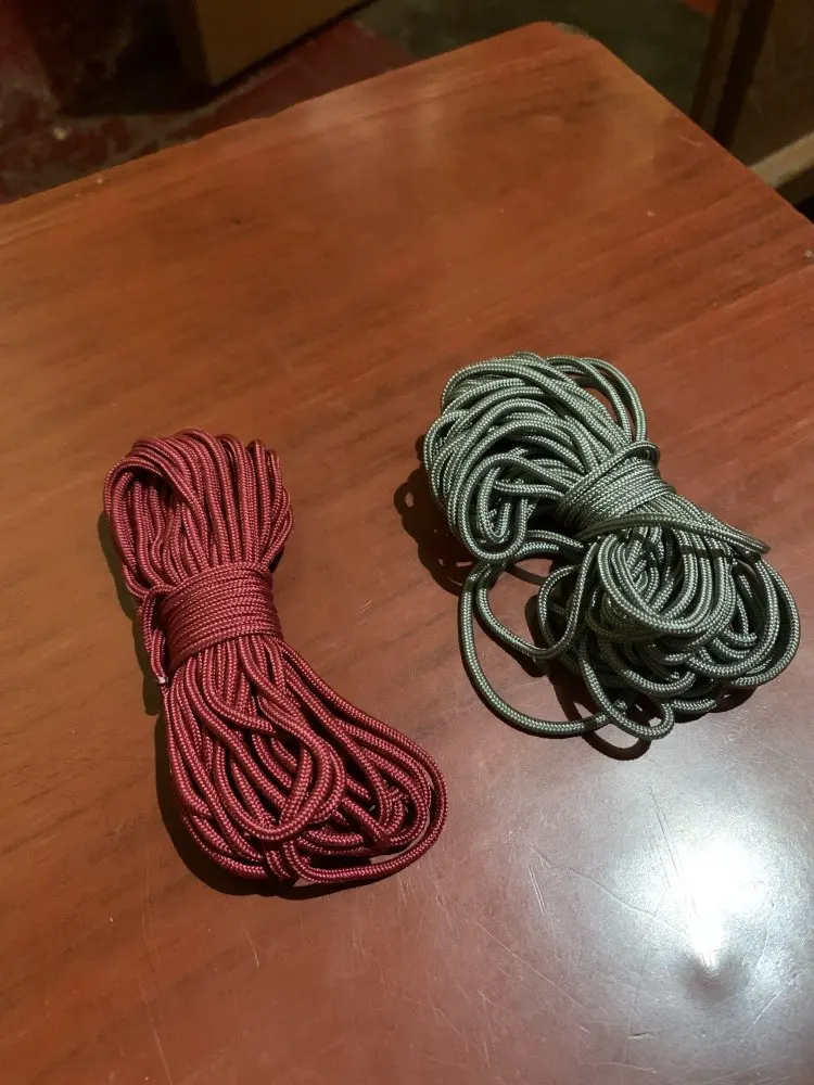 Веревка очень хорошая. Менее половины нормального Паракорда. Имейте это в виду при заказе. При отсутствии теста, он выглядит сильным, хотя немного более эластичным, чем ожидалось.