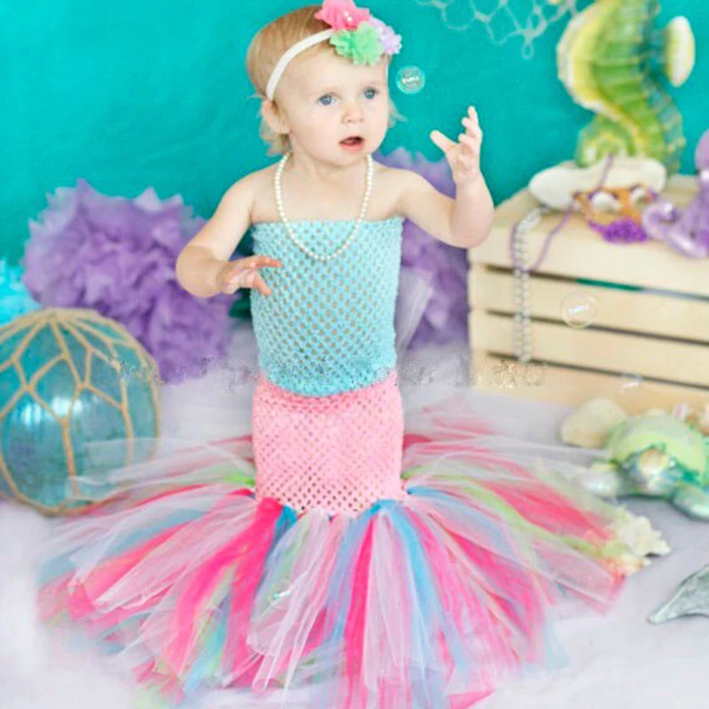 Набор моря русалки принцессы для девочек рыбий хвост юбка-пачка платье для новорожденного детская одежда для девочек розового и фиолетового цветов Аква мятно-зеленого цвета, Платья для праздников и дней рождения