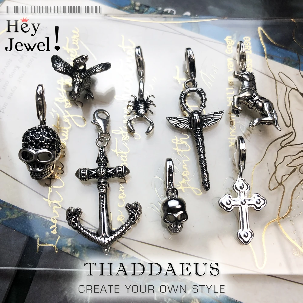 Подвеска в виде черепа, якоря, Креста, европейская бижутерия, хороший подарок в стиле панк-клуба, серебро 925 пробы, подходит для модных сумок, браслетов, аксессуары