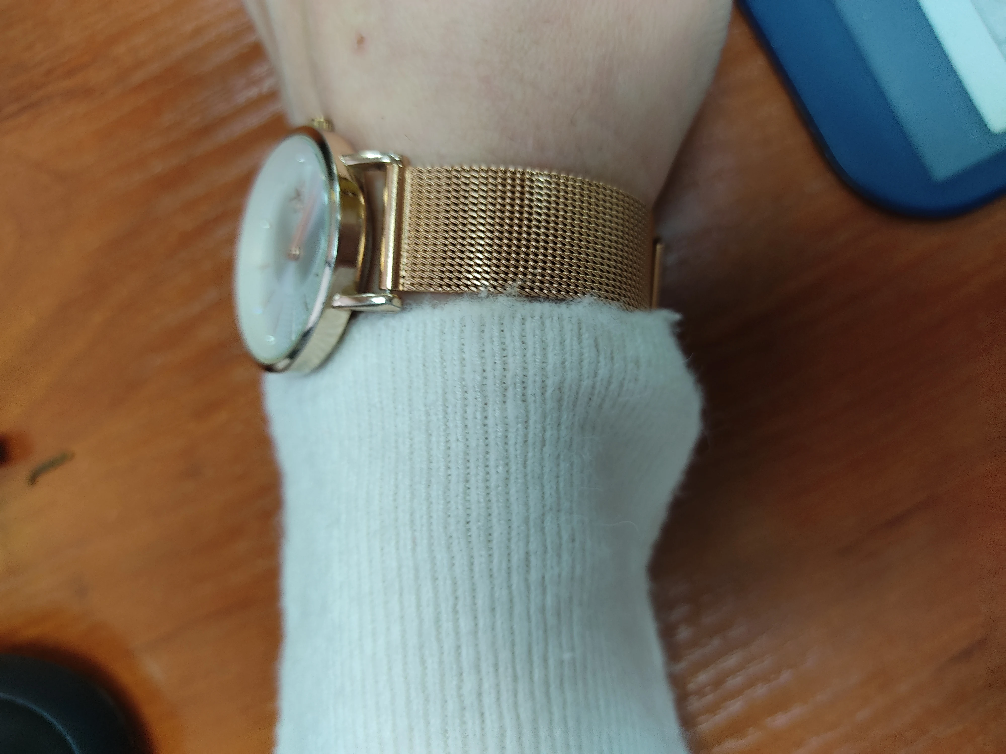 Красивый и стильный. Но есть пара косяков: потёртость(возможно остатки клея от защитной плёнки) и не стыкующиеся звенья, но не критично.