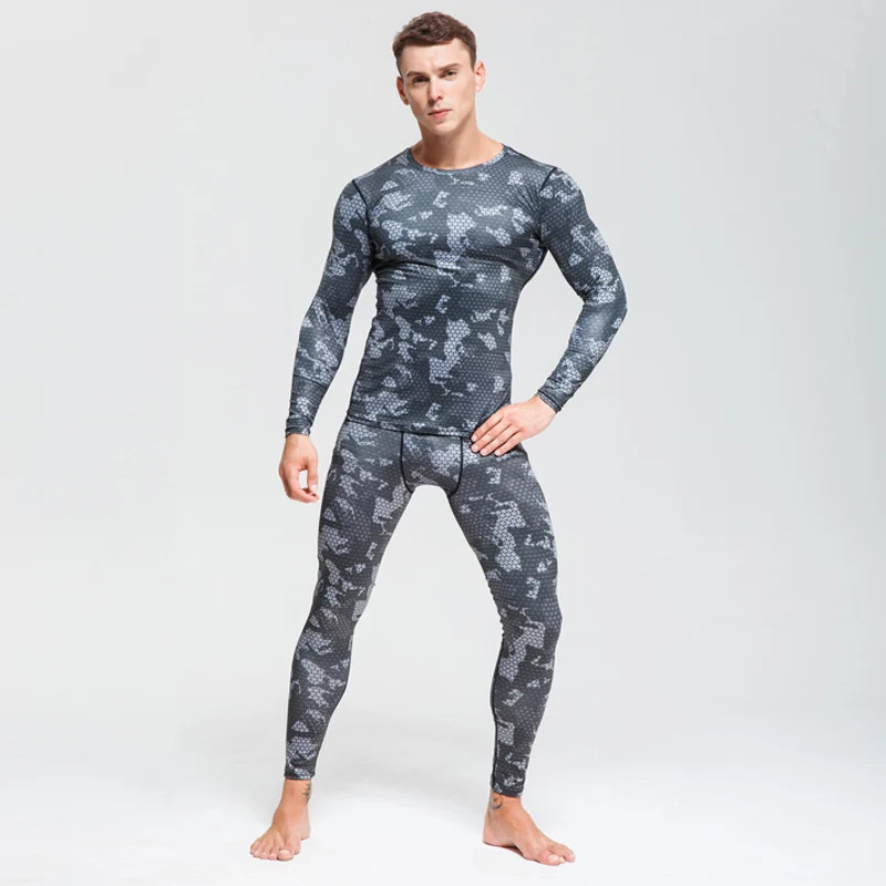 Камуфляжная футболка мужской комплект для бега компрессионная спортивная рубашка Мужские дышащие рашгарды мужские костюмы тренажерный зал фитнес трико ММА