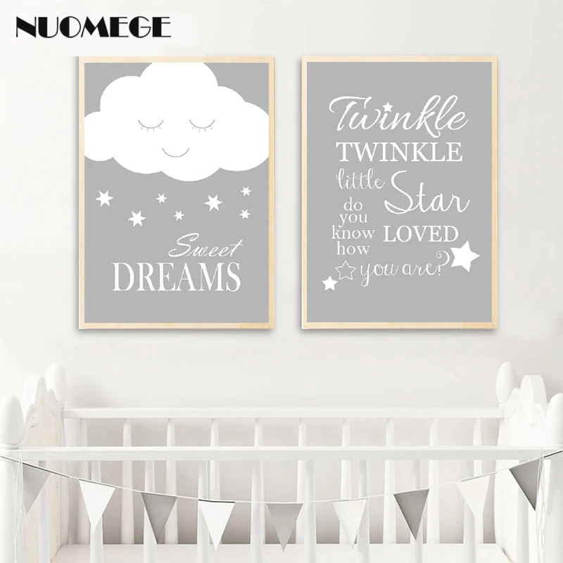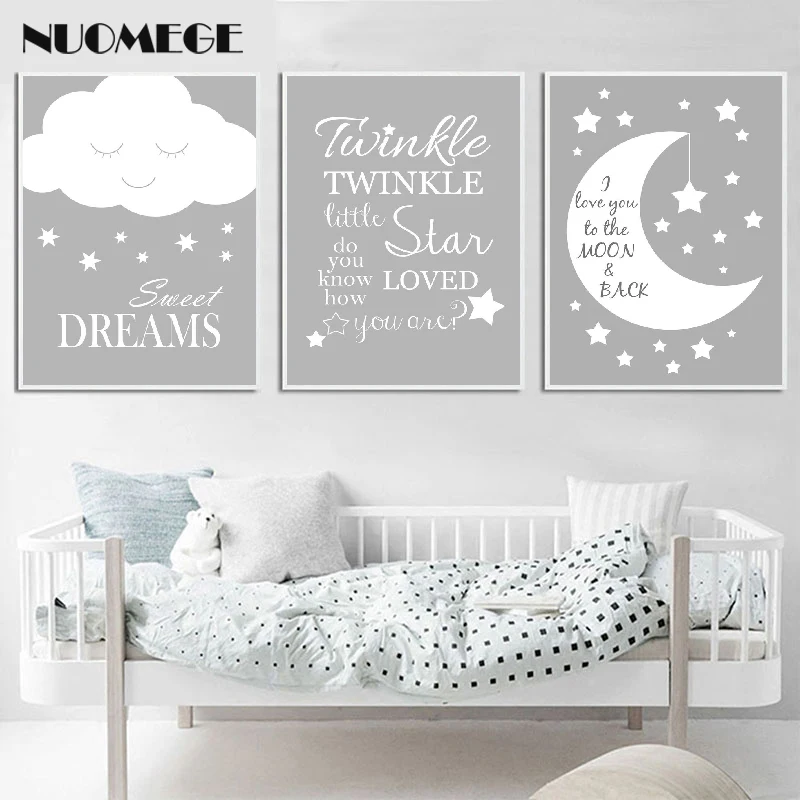 Настенные картины для детской комнаты, Постер и принты на холсте с изображением Луны и мерцания, в скандинавском стиле, украшение для детской комнаты