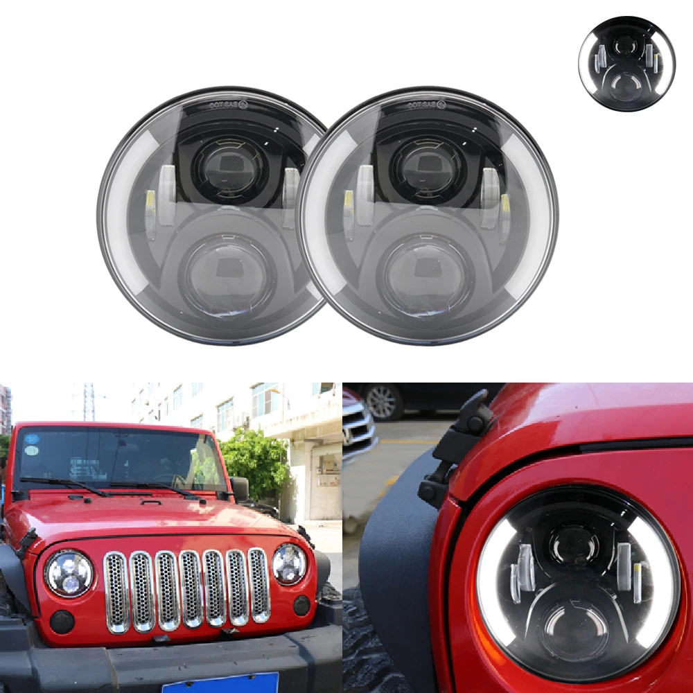 7-дюймовые светодиодные фары, полный гало, ангельские глазки, фонар...