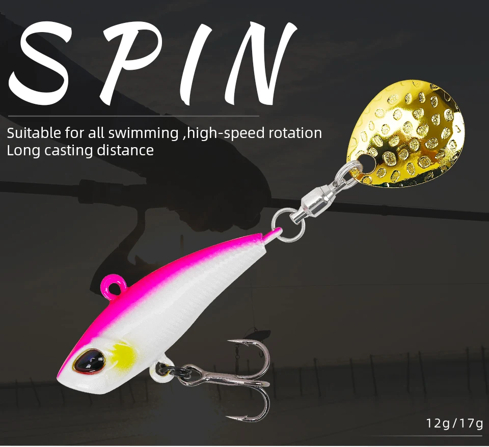 TSURINOYA металлическая Vib рыболовная приманка с блестками, Спиннербейт 36 мм/12 г, 42 мм/17 г, Тонущая вибрационная приманка с вращающимися блеснами, ложка, приманка