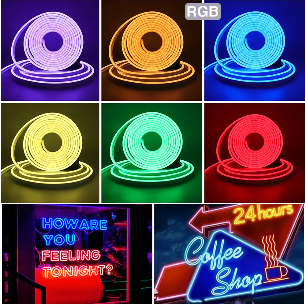 RGB неоновая лента, краснаязеленаясиняятеплаябелая, водонепроницаемая лента, гибкая неоновая световая лента, 2835 светильник па, 12 В постоянного тока