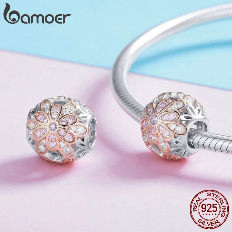 Бусины-талисманы BAMOER из серебра 925 пробы с прозрачными фианитами для изготовления ювелирных изделий для браслетов, SCC923