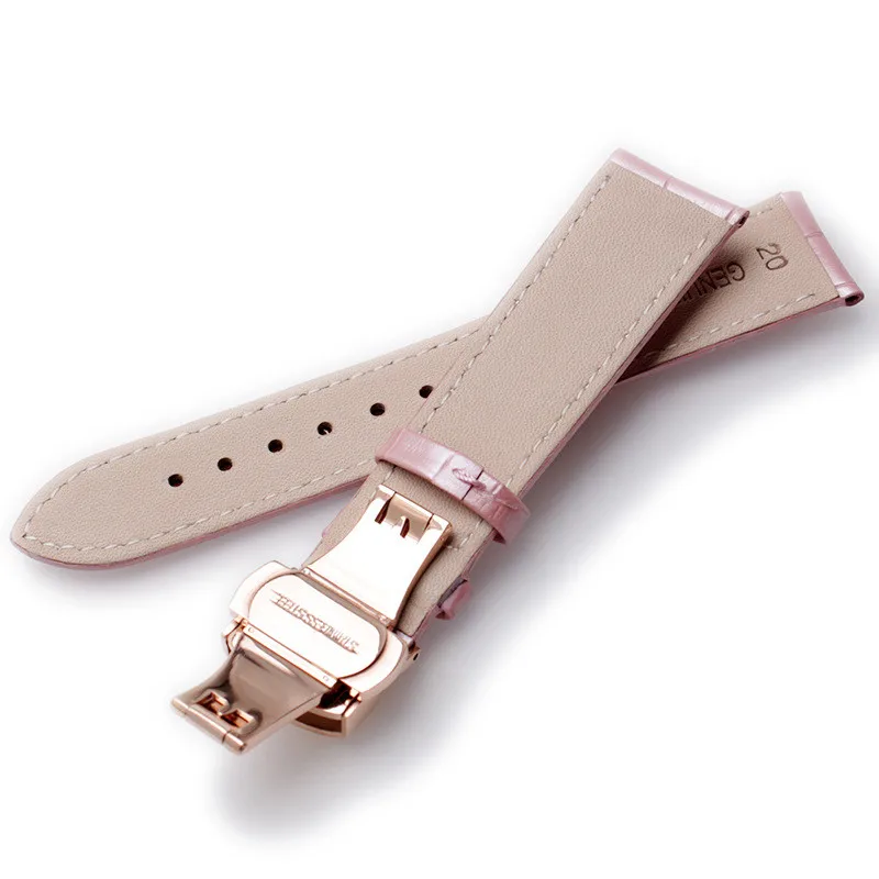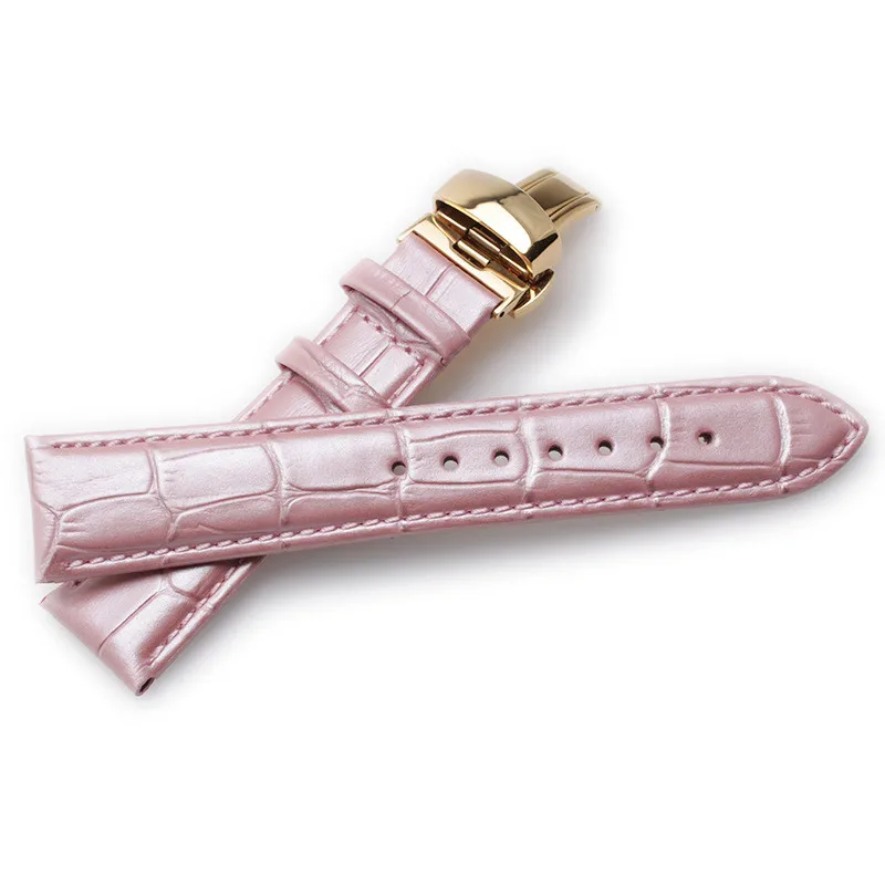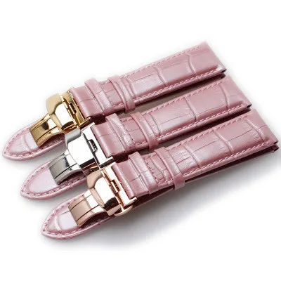 Ремешок для часов из натуральной кожи, розовый ремешок для часов с пряжкой-бабочкой для женщин, женские часы 22 мм 20 мм 18 мм 16 мм 14 мм 12 мм