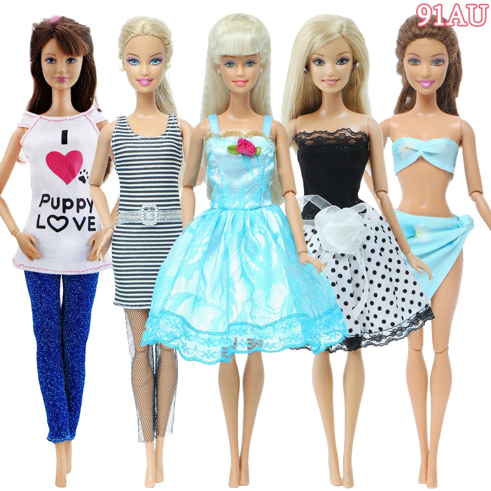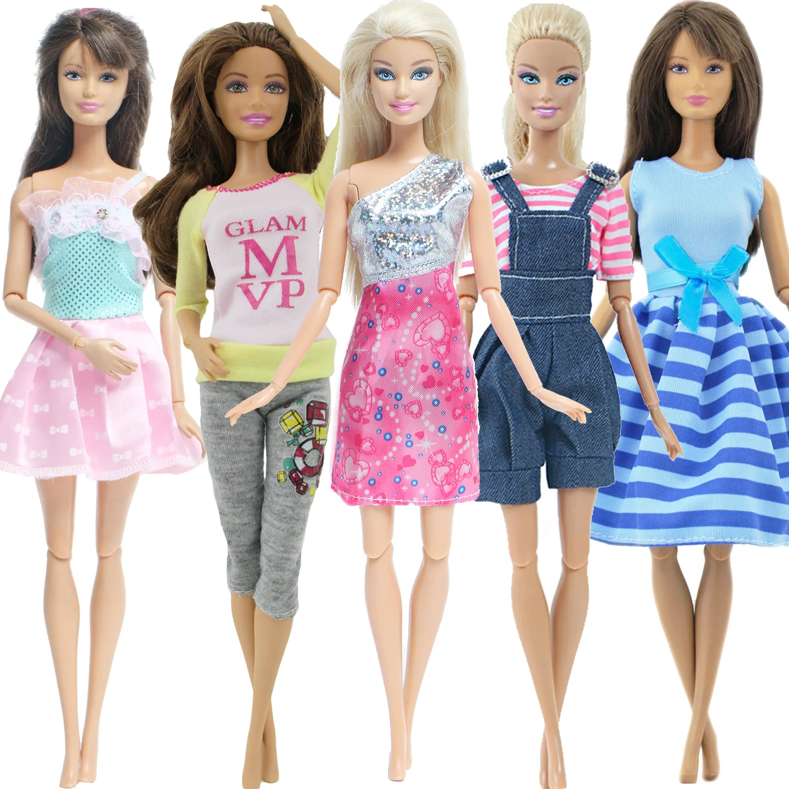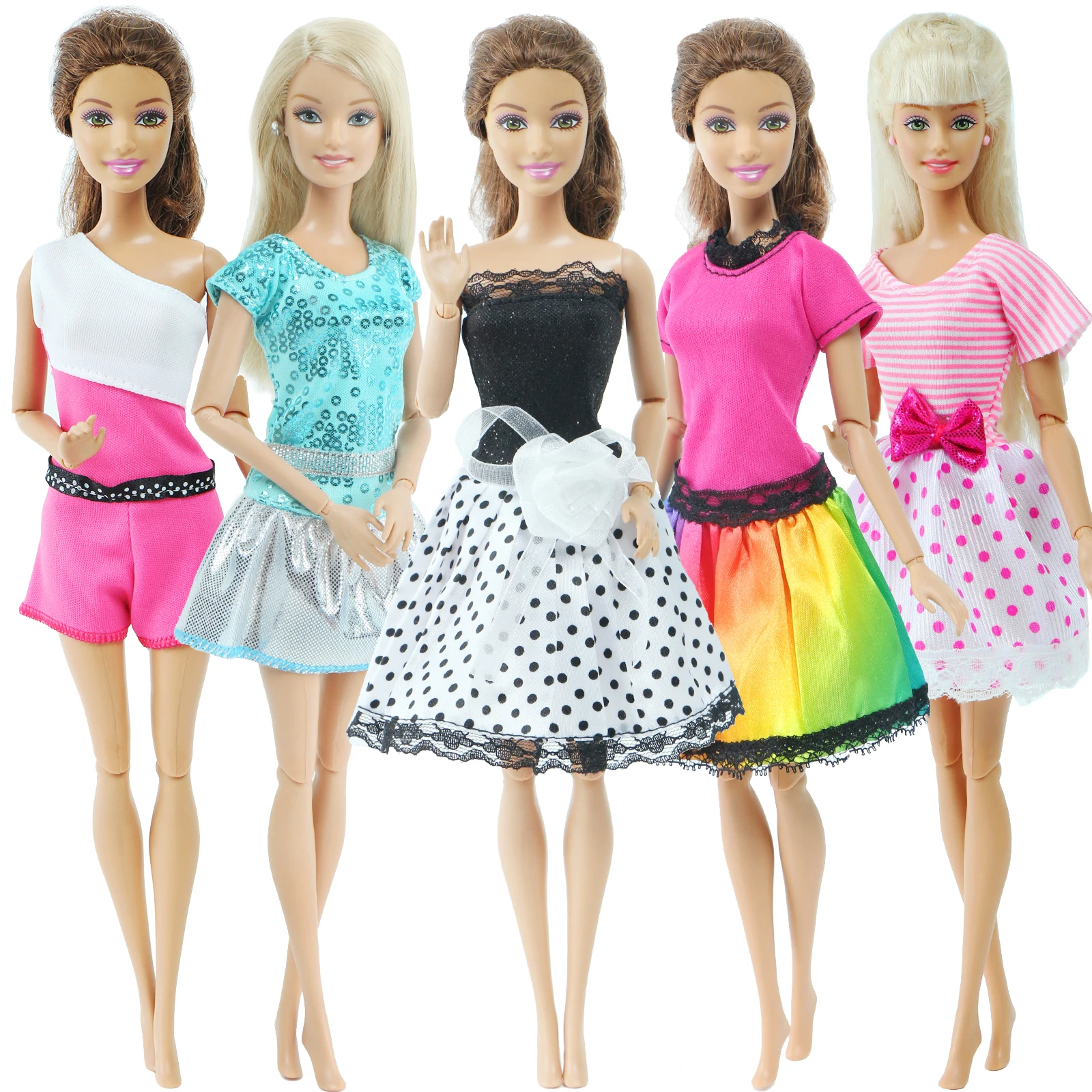 5 модных нарядов ручной работы, красивые платья принцессы смешанного стиля, юбка с цветочным узором, Одежда для куклы Барби, аксессуары, игрушки