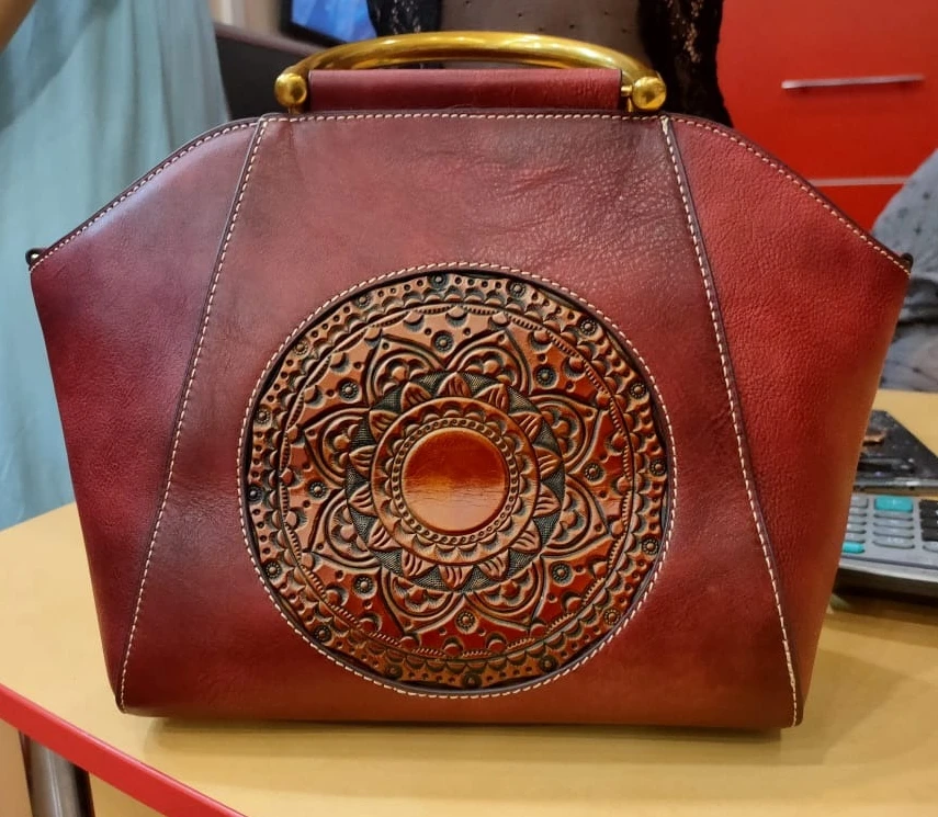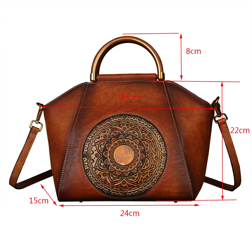 Женская сумка-мессенджер из натуральной тисненой кожи, саквояж с верхними ручками в стиле ретро, тотем, узор из натуральной кожи, тоут на плечо