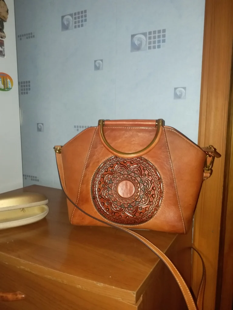 Прекрасная сумочка! Все как в описании кроме того, что рисунок немного бледнее. Пахнет кожей. Сделана очень качественно. Хоть и выглядит маленькой, но очень вместительная. Я думала, что она будет меньше внутри. Одна из самых удачных покупок на Алике. Спасибо продавцу!