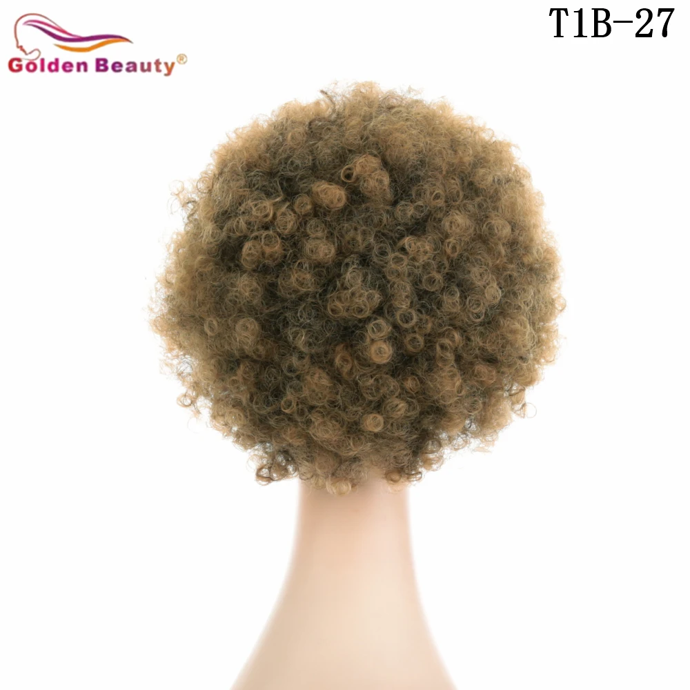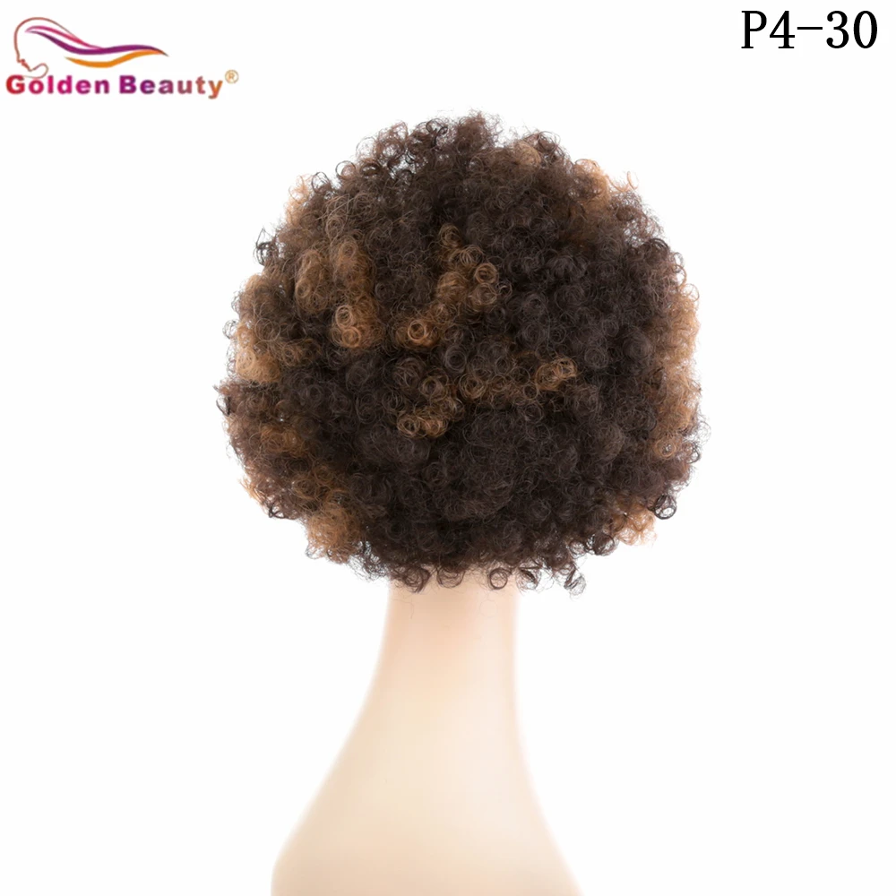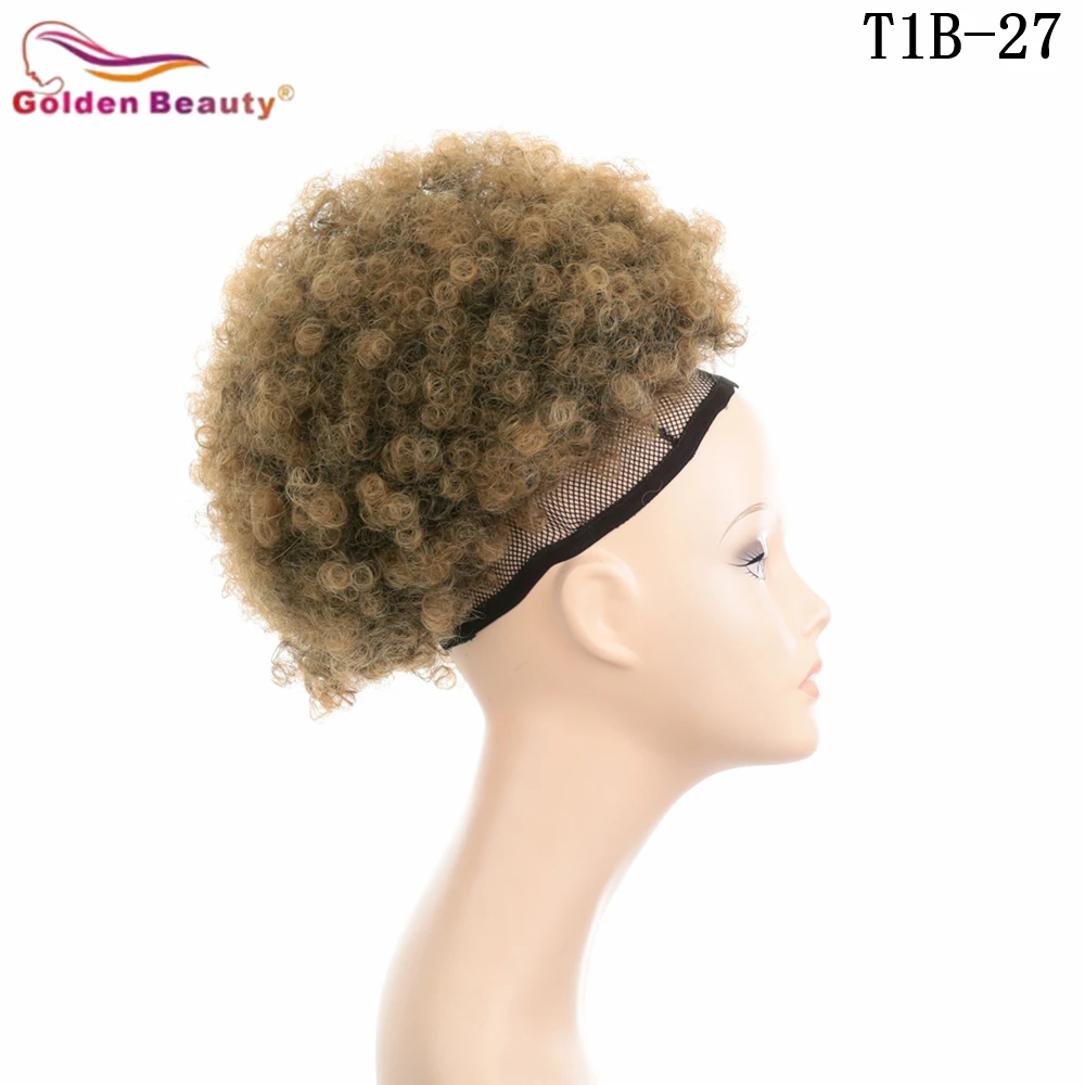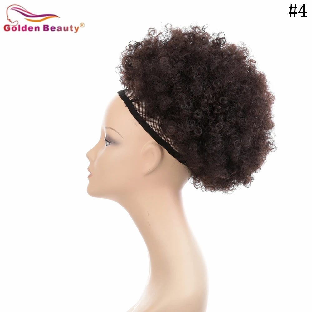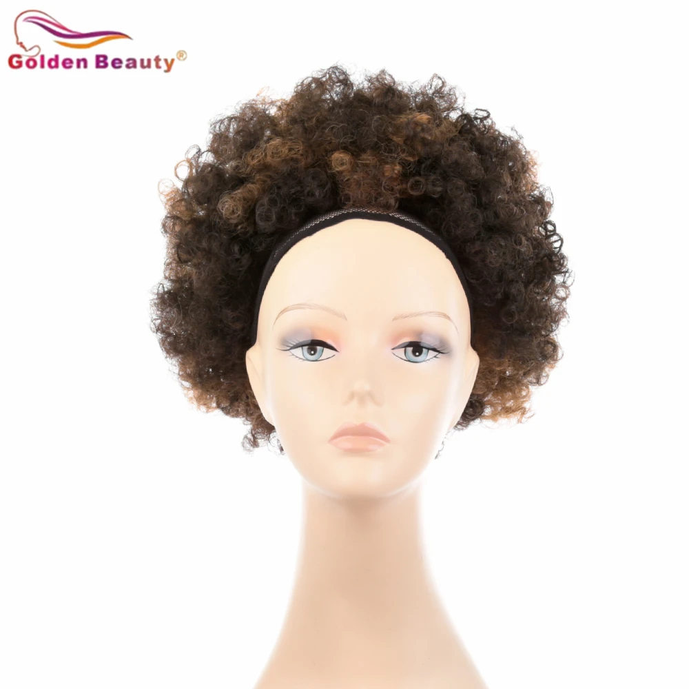 Золотой Красота 10 дюймов афро буфами на рукавах, прическа "хвост" кудрявый вьющиеся синтетические волосы прически шиньон пучок волосы кусок расширение средней Размеры