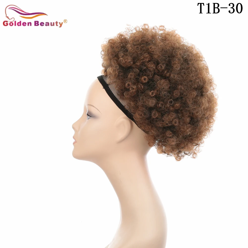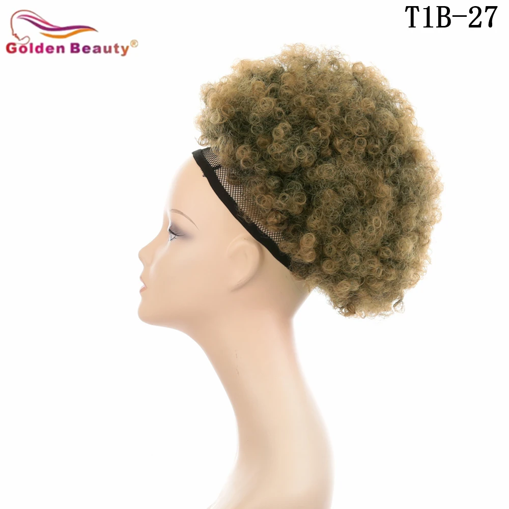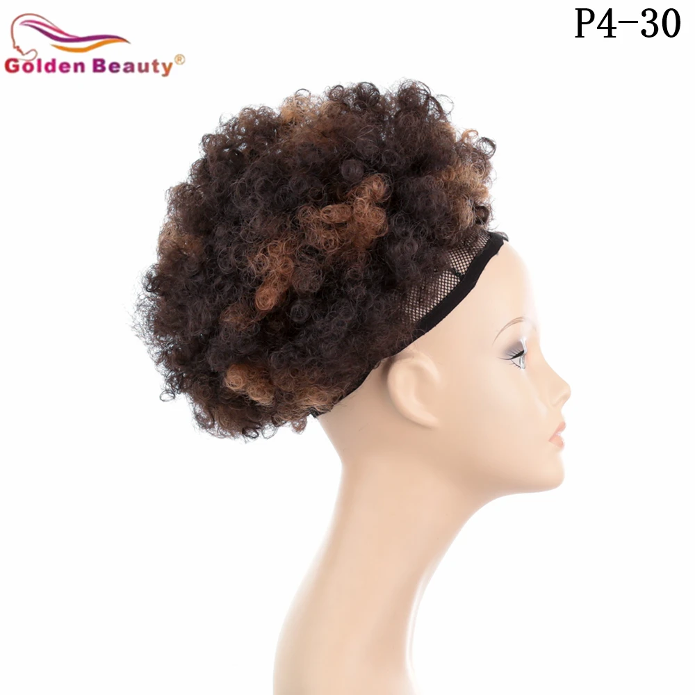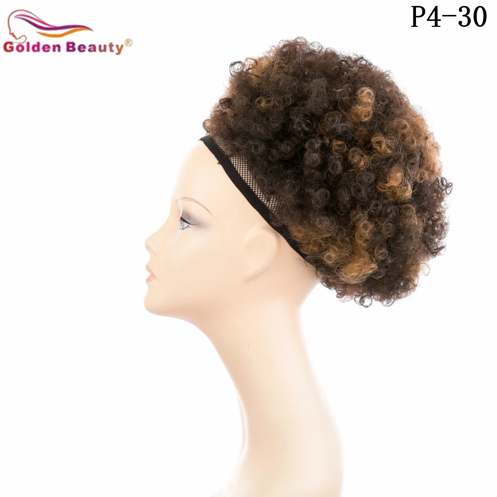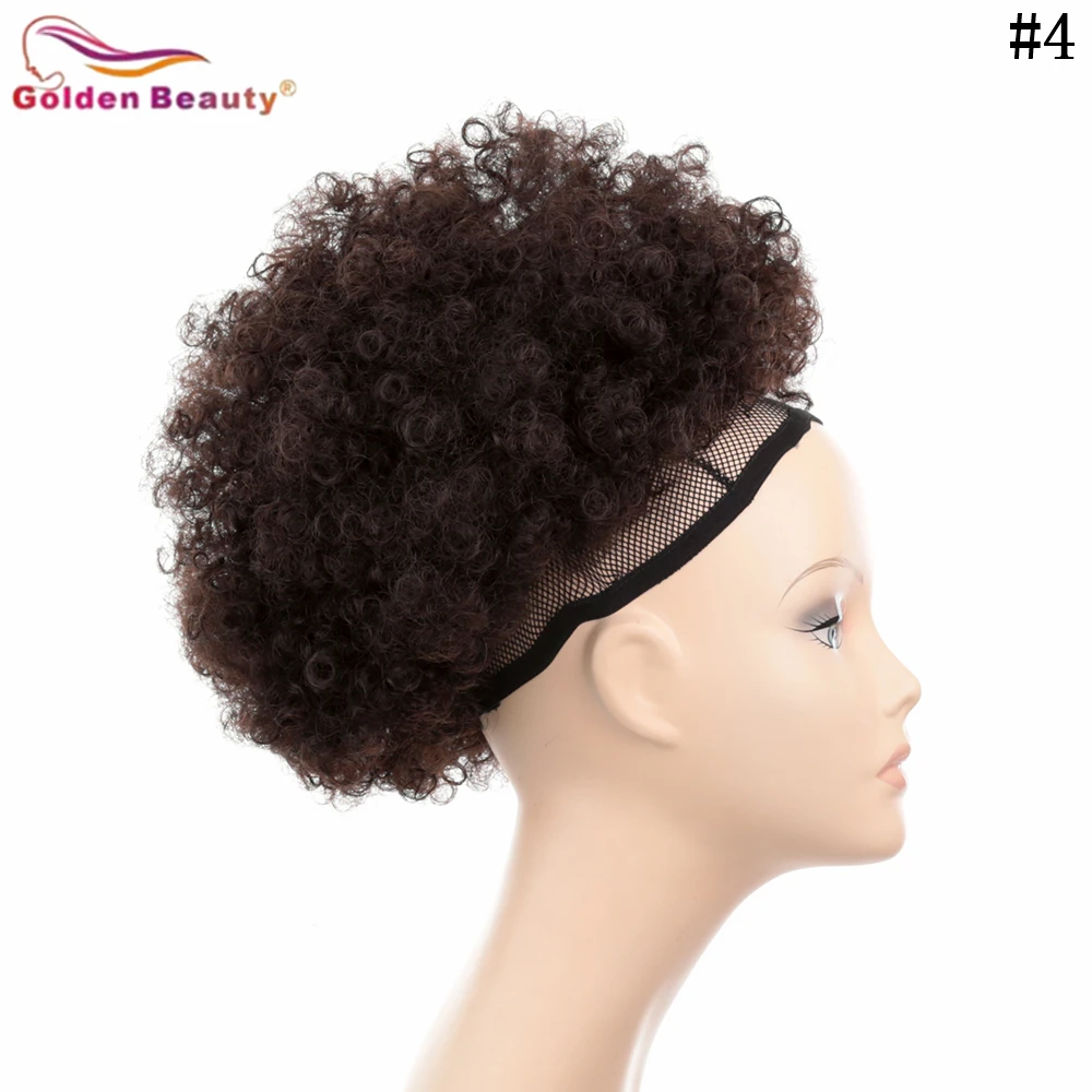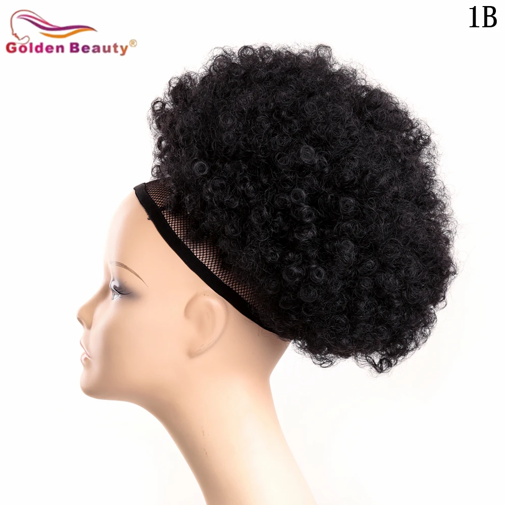 Золотой Красота 10 дюймов афро буфами на рукавах, прическа "хвост" кудрявый вьющиеся синтетические волосы прически шиньон пучок волосы кусок расширение средней Размеры