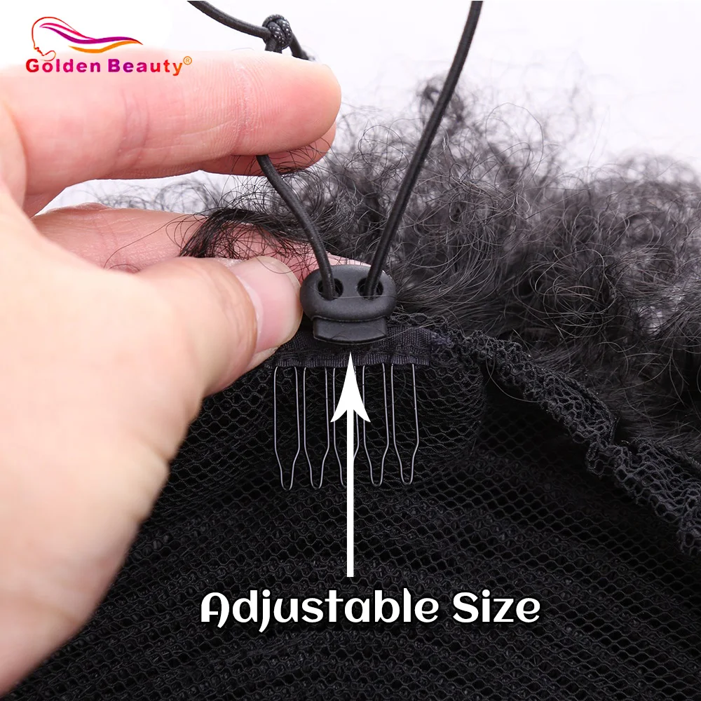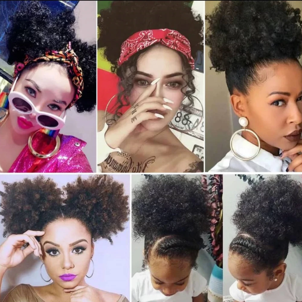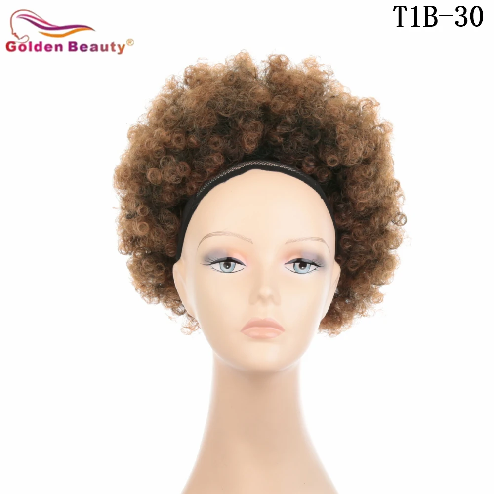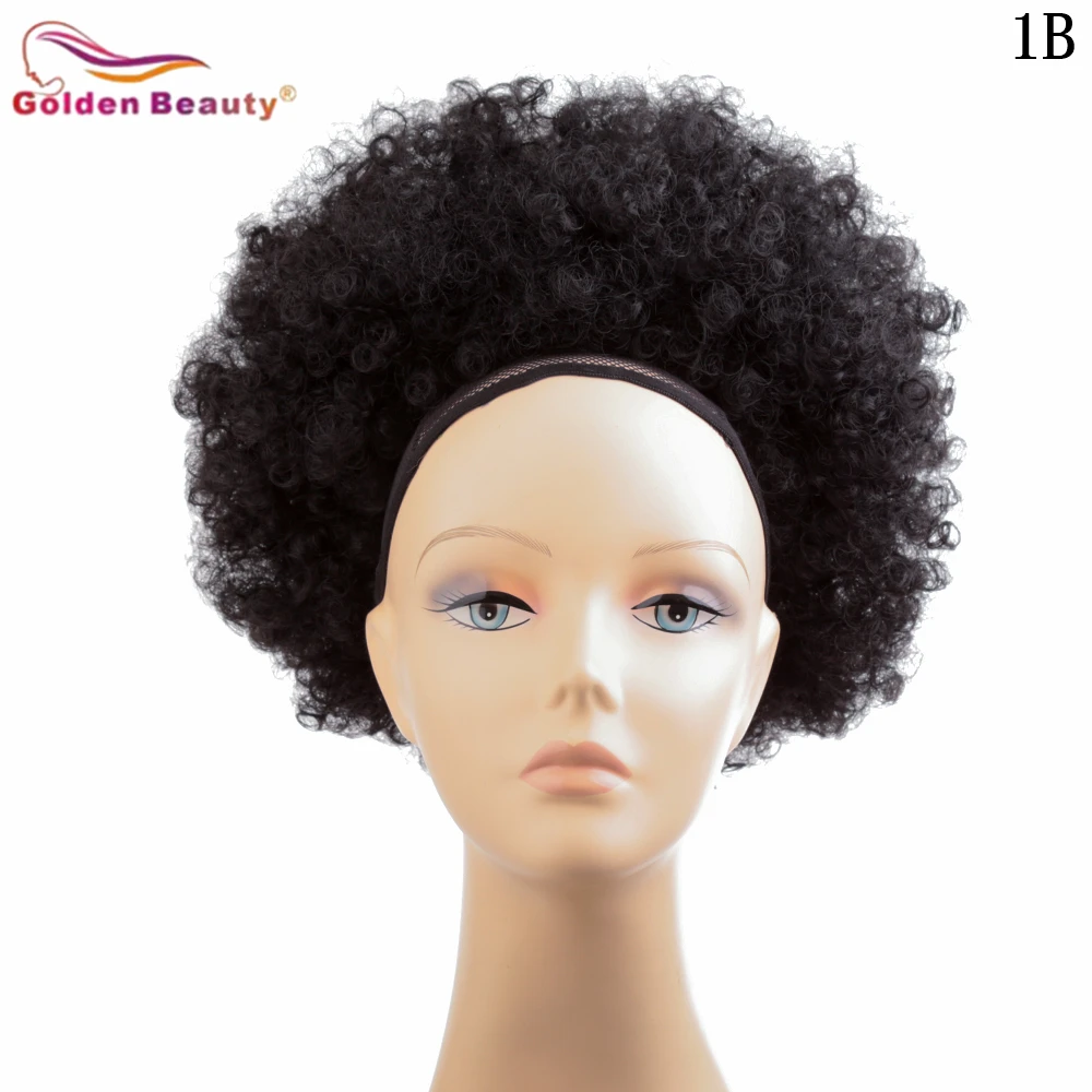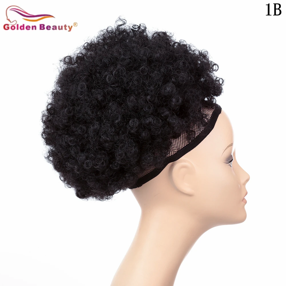 Золотой Красота 10 дюймов афро буфами на рукавах, прическа "хвост" кудрявый вьющиеся синтетические волосы прически шиньон пучок волосы кусок расширение средней Размеры