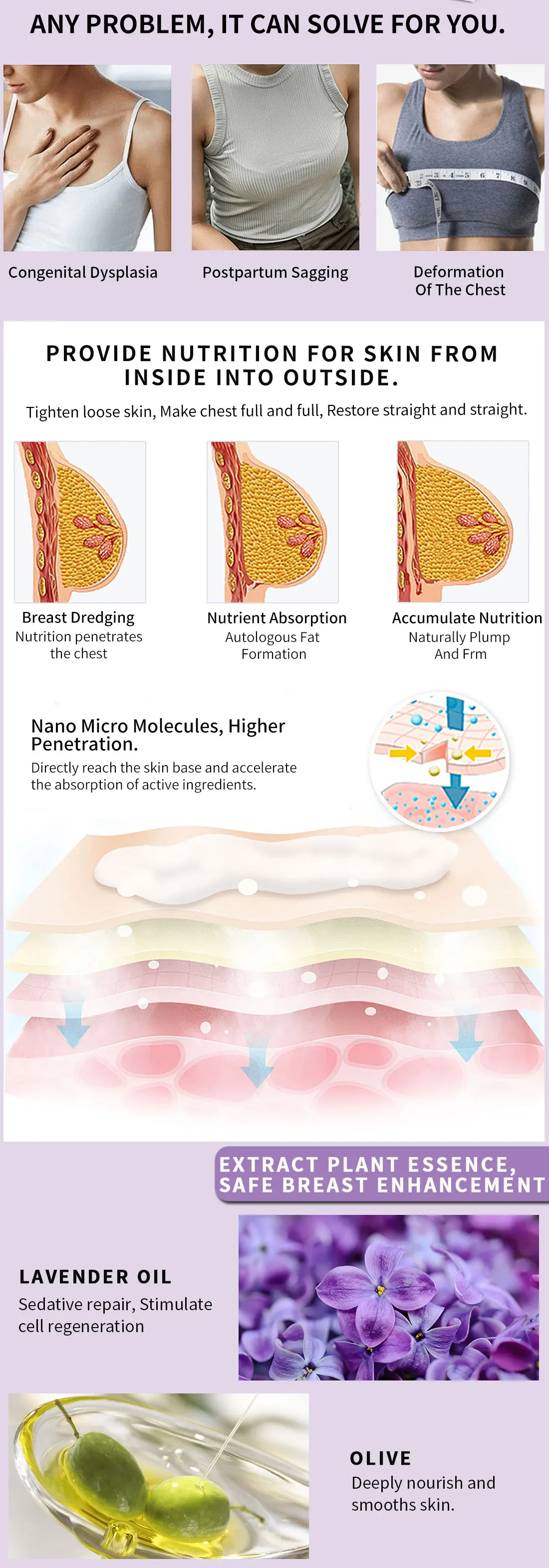 Лавандовый эфирное масло для увеличения груди, масло для массажа груди, масло для увеличения объема груди, восстановления обвисшей груди, продукты для ухода за грудью