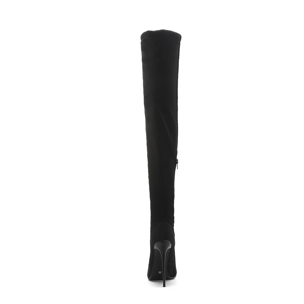 Женские сапоги выше колена с острым носком, на высоком каблуке-шпильке
