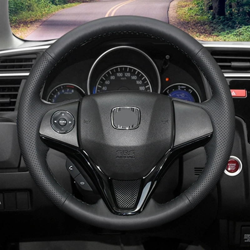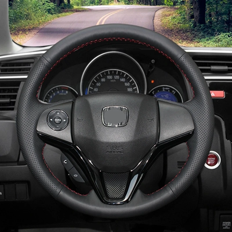 Черный чехол рулевого колеса автомобиля GNUPME DIY из искусственной кожи, прошитый вручную, для Honda Fit 2014 2015 Vezel 2014 XRV