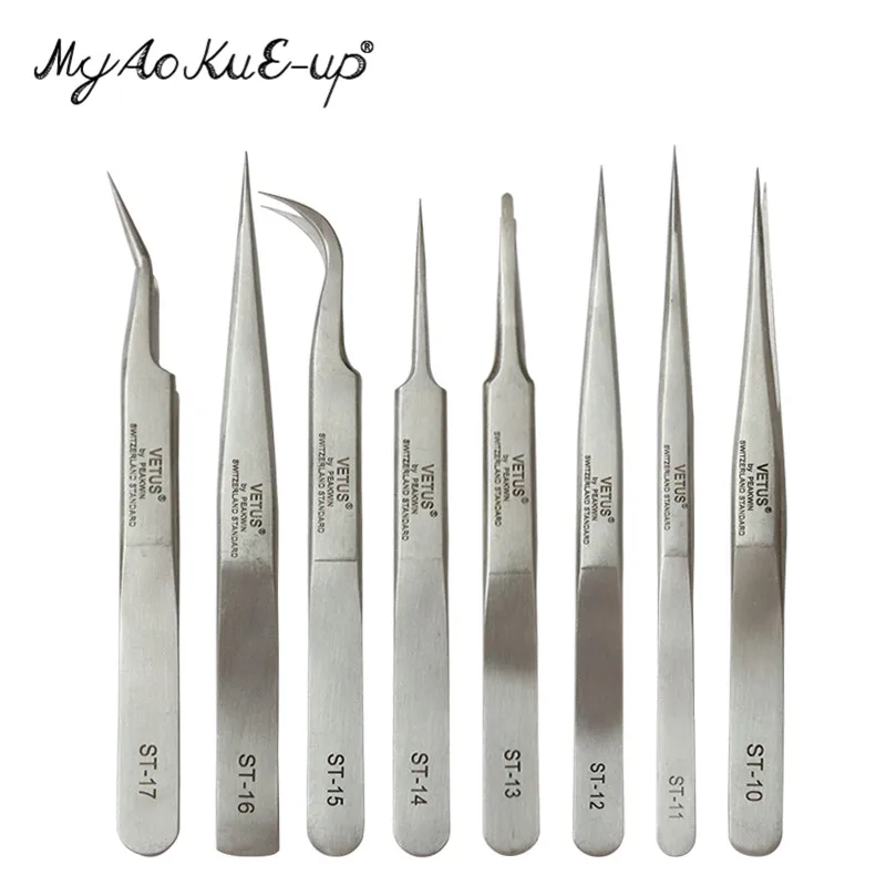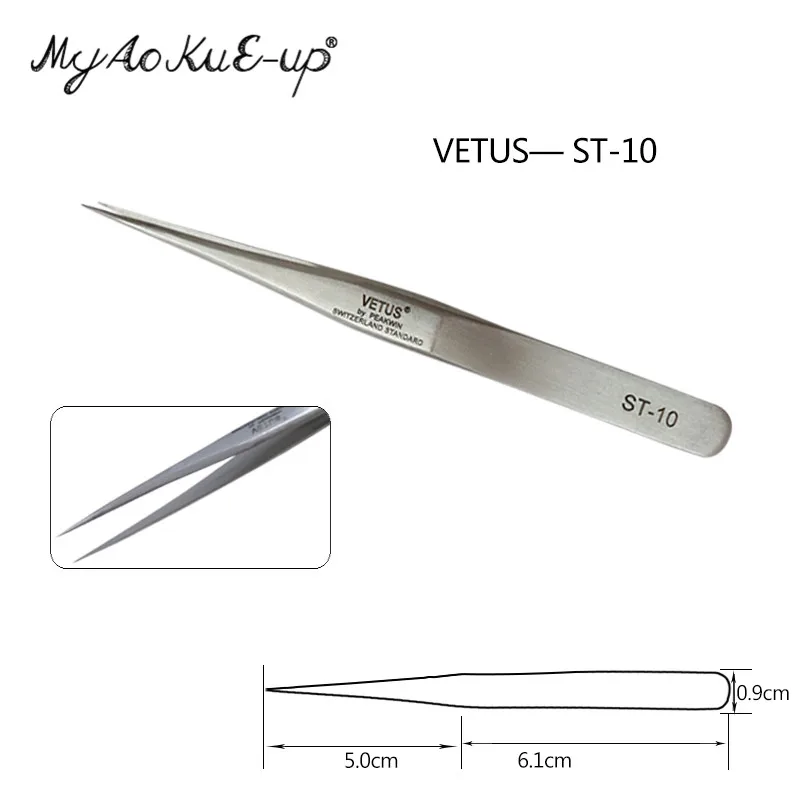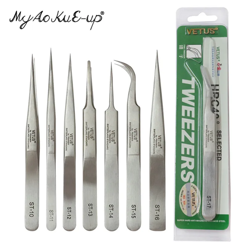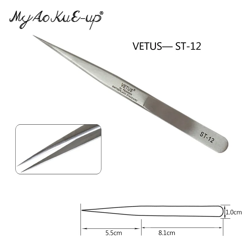 Антистатические ST пинцеты vetus, 1 шт., оригинальные пинцеты для наращивания ресниц, пинцет из нержавеющей стали для ST-1011121314151617