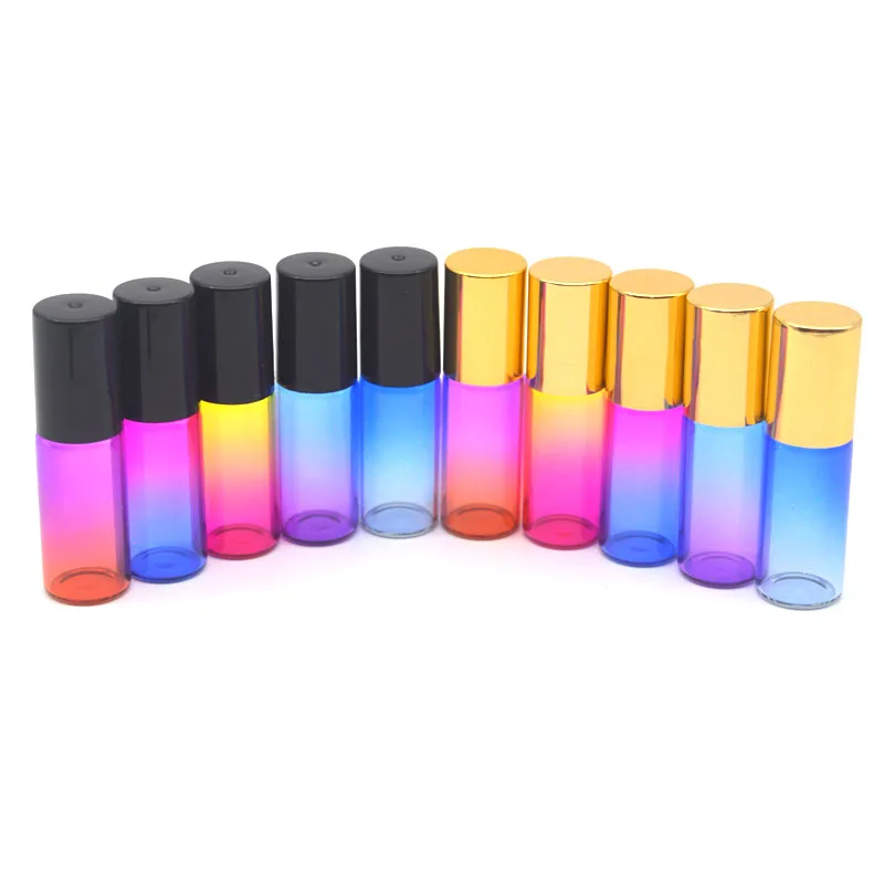 5 мл градиентный рулон на роликовых бутылках для эфирных масел рулонный многоразовый флакон для духов контейнеры для дезодорантов с черной/золотой крышкой