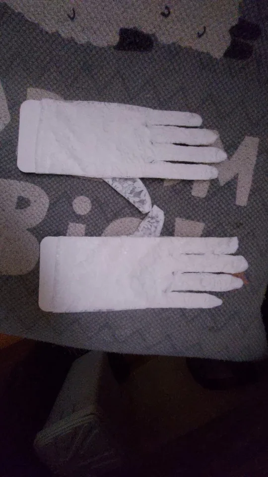 Перчатки заказала на роспись, качество за такую цену отличное. В Москве не знаю даже, где искать подобные вещи, в свадебных салонах они стоят по 2-3к. Так что берите на вооружение. Размер небольшой. У меня размер пальца 15,5-16,0 то есть маленькая ручка.