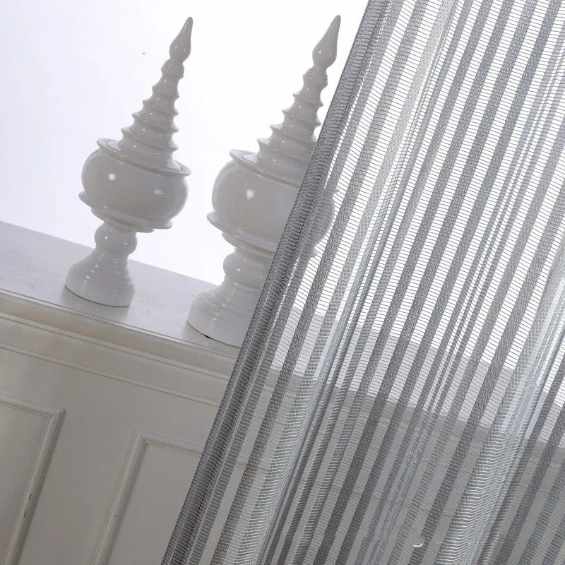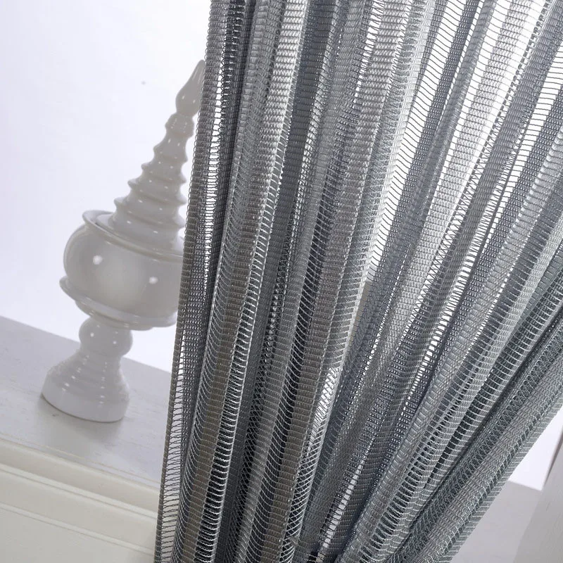 Современные роскошные полосатые полые тюлевые занавески серые тонкие трикотажные прозрачные Занавески Из вуали для гостиной спальни оконные шторы на заказ #4