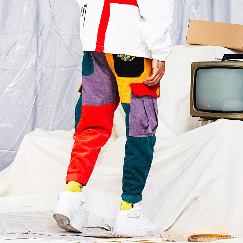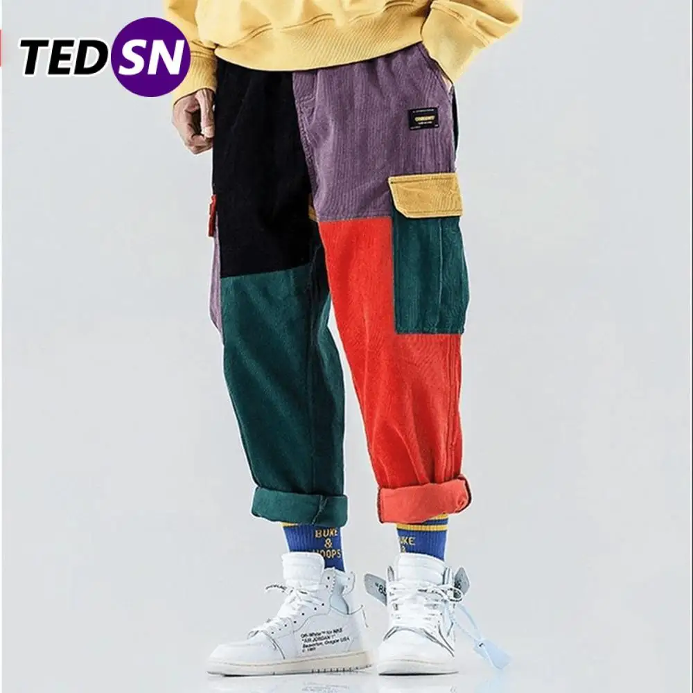 Брюки-карго TEDSN мужские вельветовые, Джоггеры в стиле хип-хоп, винтажные брюки-султанки в стиле пэчворк, свободные штаны в стиле Харадзюку