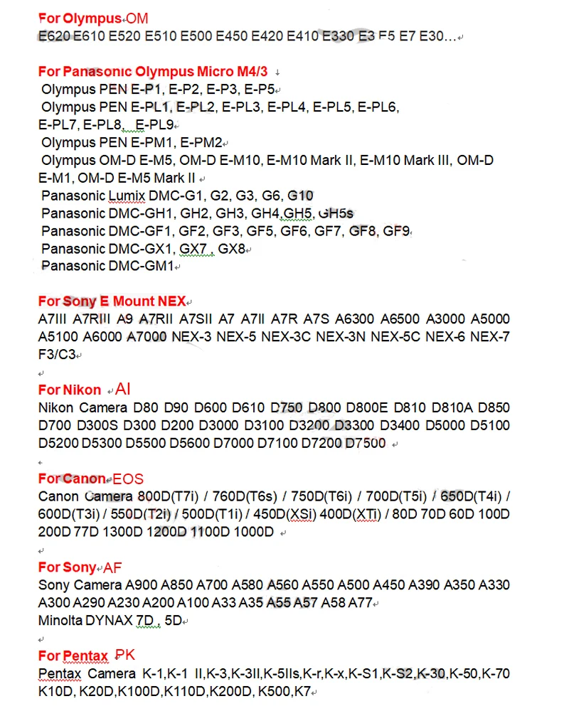Удлинительное Кольцо-адаптер для макросъемки для M42 Canon EOS Nikon AI SONY AF NEX Pentax PK Olympus OM Pansonic Micro M43