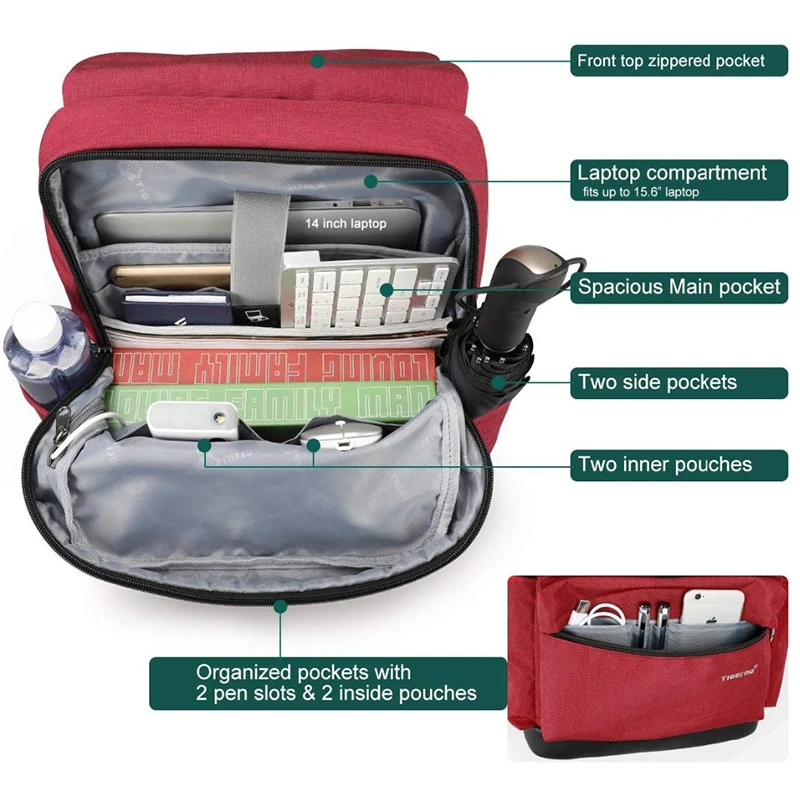 Многофункциональный рюкзак Tigernu для женщин, молодежная модная сумка для ноутбука 15,6 дюйма с USB, школьные ранцы для девочек-подростков