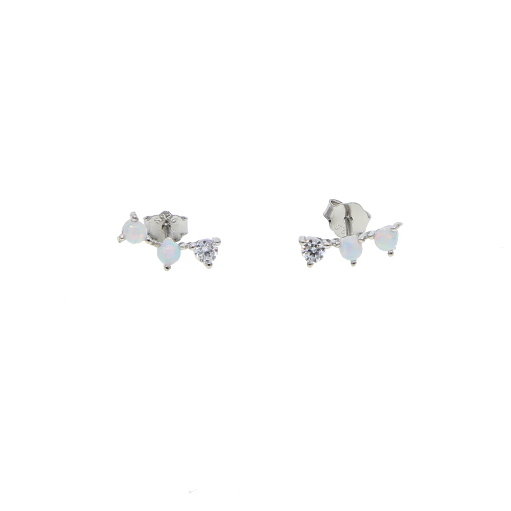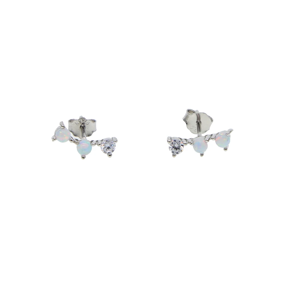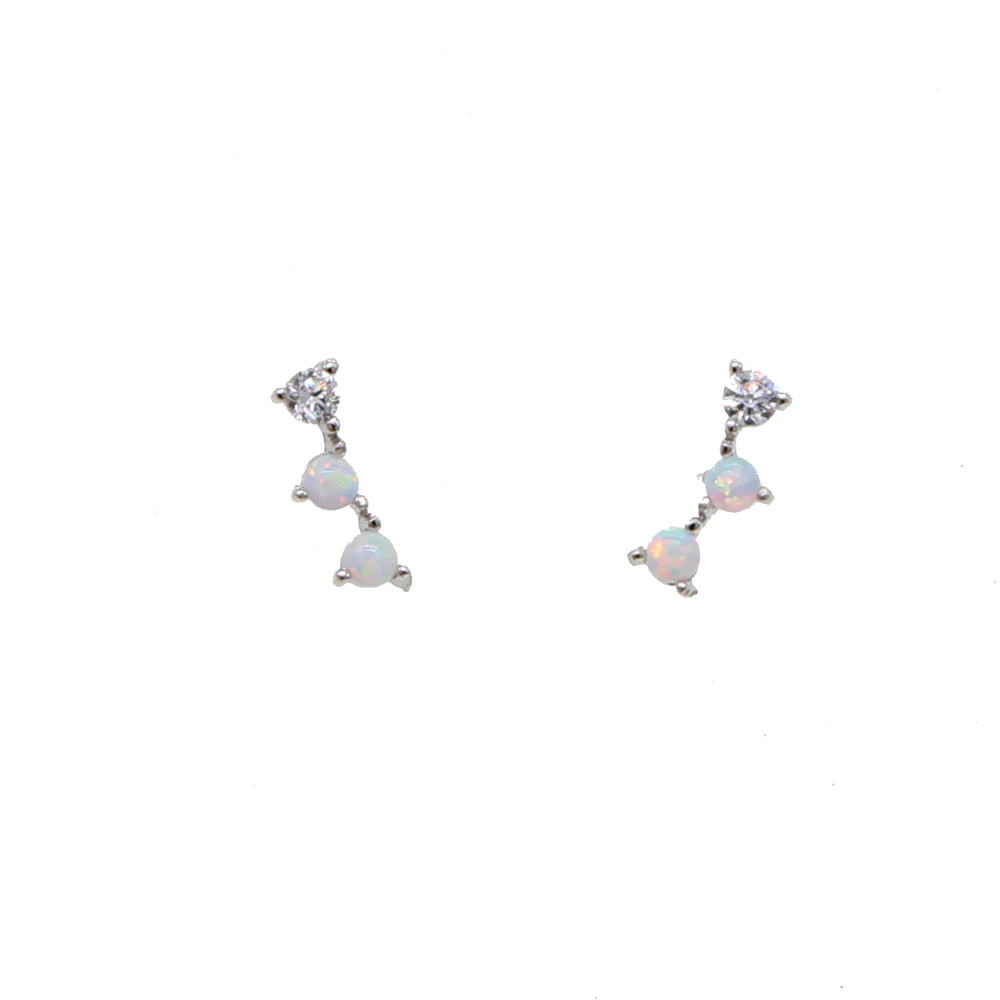 Минималистичные серьги-гвоздики с тремя камнями для девочек, с опалом, с прозрачным фианитом, изящные простые серьги-гвоздики