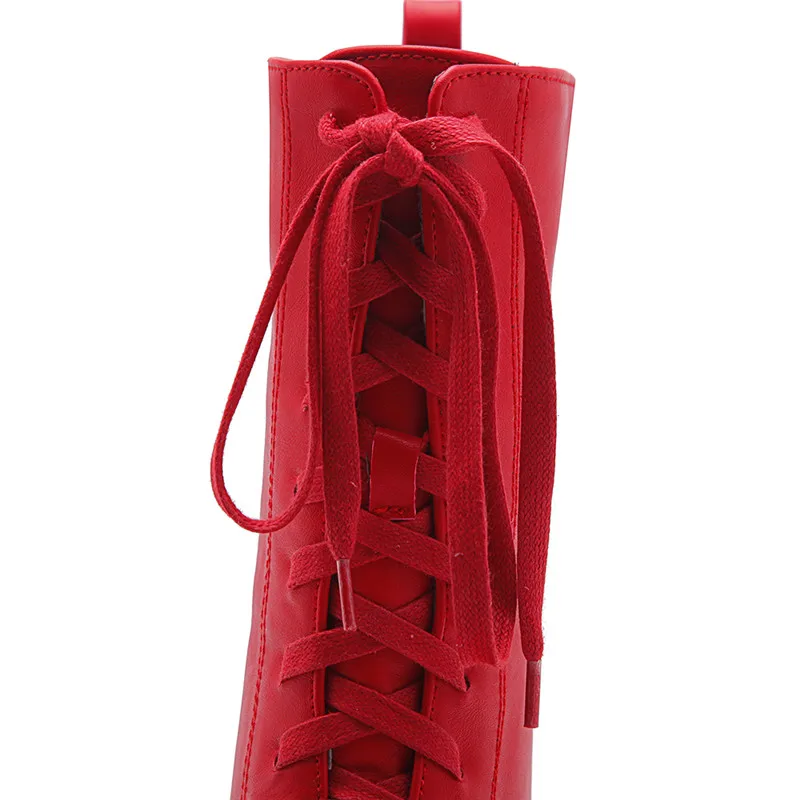 Женские ботинки на шнуровке YMECHIC, красные, черные, желтые военные ботинки на шнуровке с перекрестной шнуровкой, мотоциклетные боевые ботинки, женская обувь, зима 2018