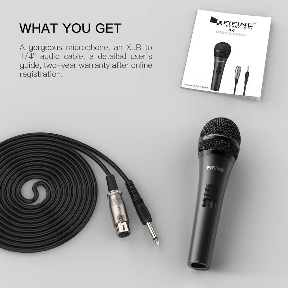 Динамический микрофон Fifine, для вокального микрофона, для караоке, с переключателем включениявыключения, с разъемом XLR 14 футов на дюйма