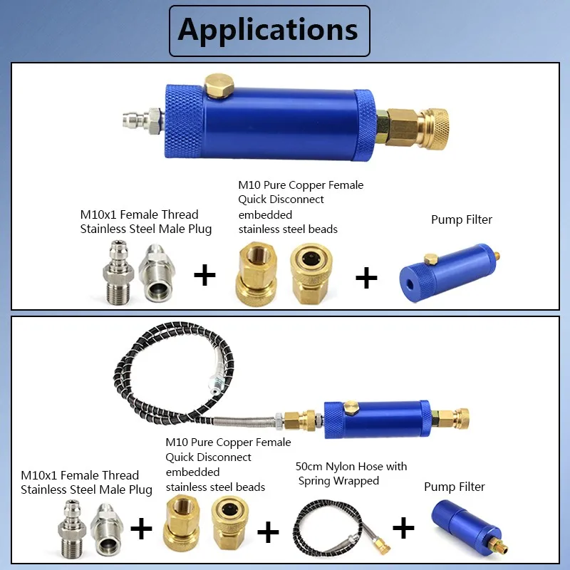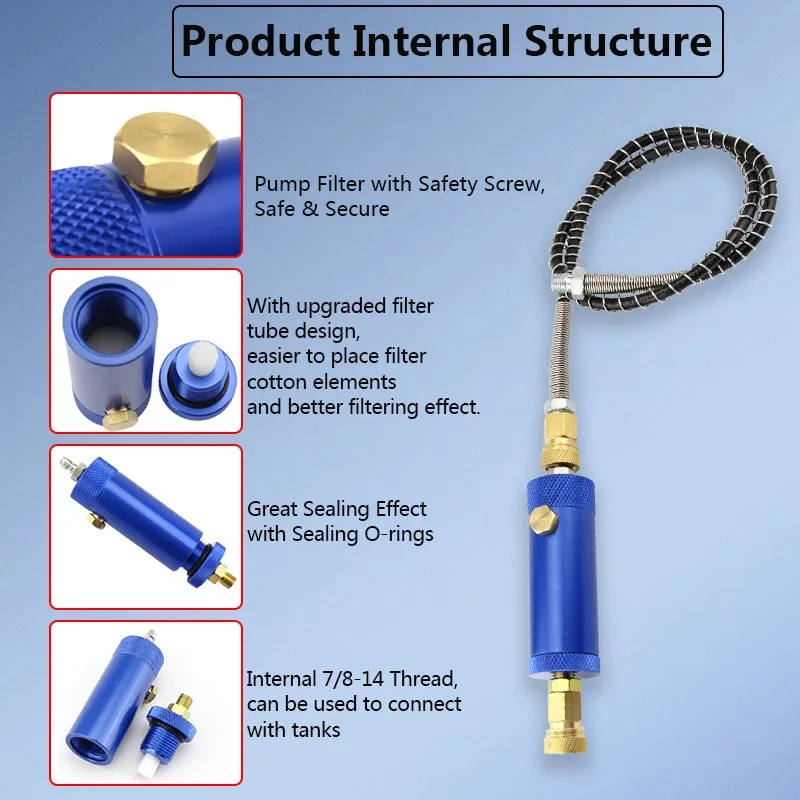 Ручной насос высокого давления PCP, фильтр с предохранительным клапаном M10x1, водомасляный сепаратор, воздушный фильтр, шланг 8 мм 50 см