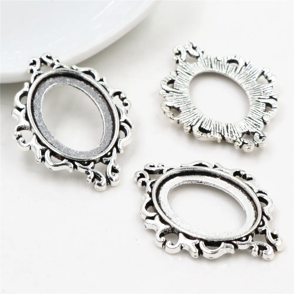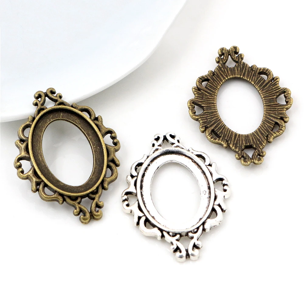 10 шт. 18x25 мм Внутренний размер античный посеребренный и бронзовые цветы стиль Камея Кабошон основа установка кулон ожерелье результаты