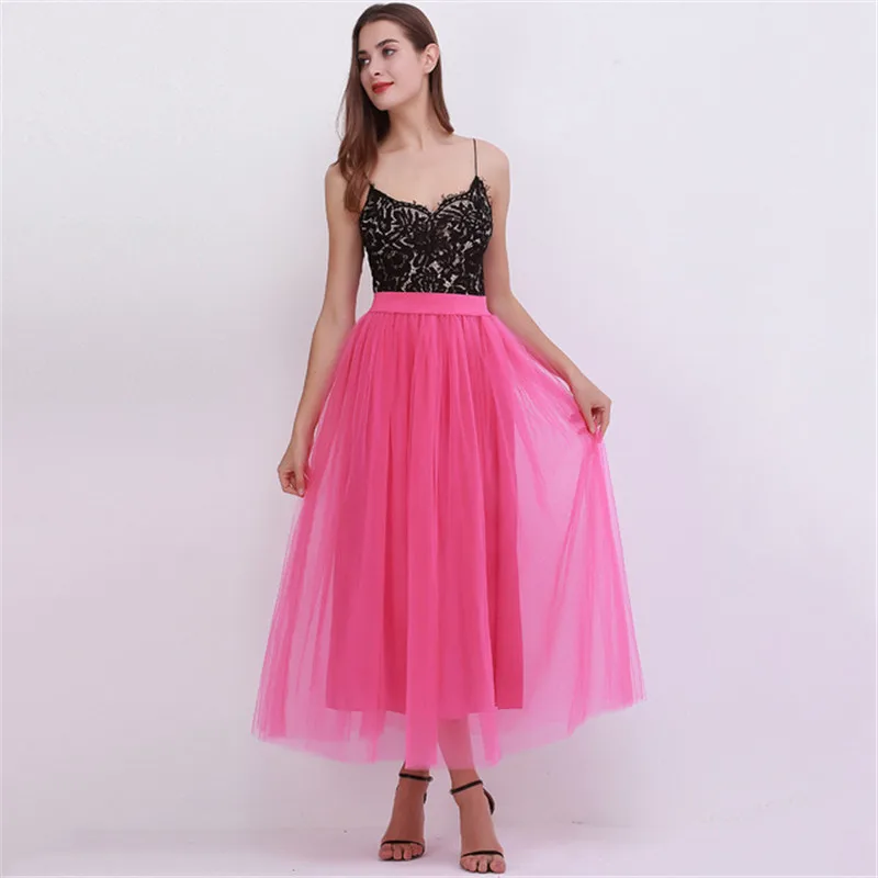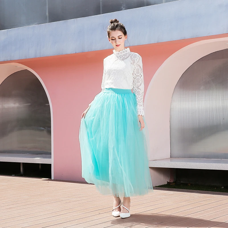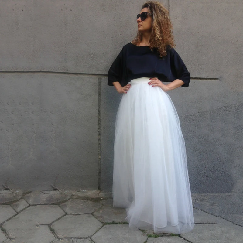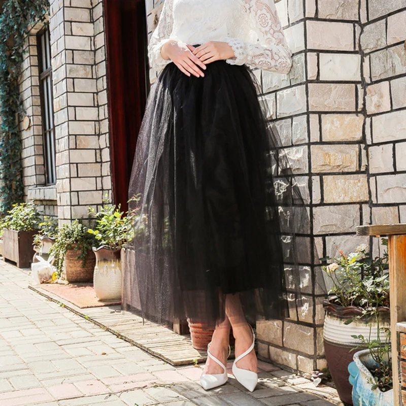 Юбка-макси Женская, пышная, эластичная, с завышенной талией, длинная юбка в пол из тюля