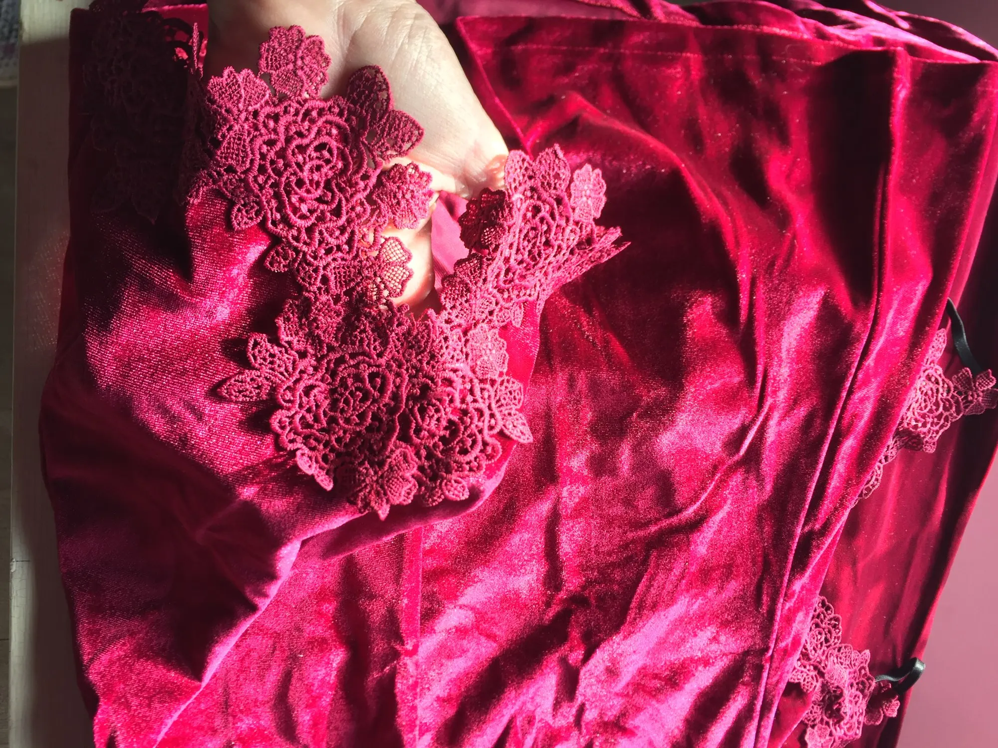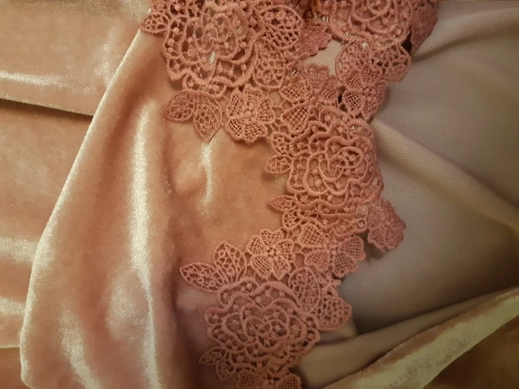 Заказ пришёл быстро, из России. По размеру соответствует, точнее 3хл на 108-90-108 впритык, то что чашечка груди со складакам и, находится не под, а по середине груди, но сидит хорошо все,штаны просто на резинке, нет выемки под перед /зад .цвет красивый. Материал синтетика, эластичный велюр. Кружево мягкое. Сняла звезду за некачественное закрепление нити, придётся дошивать, иначе расползется.
