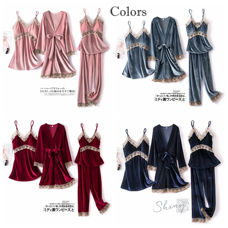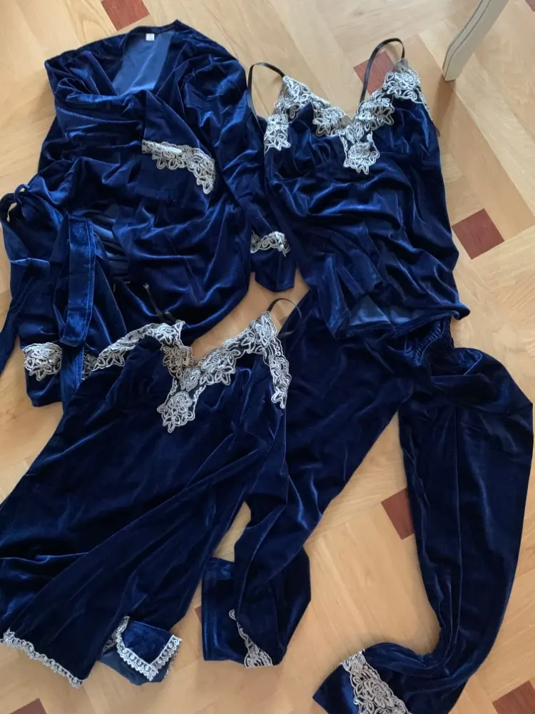 Женский бархатный пижамный комплект JULY'S SONG, из 4 предметов, с кружевом, без рукавов, для зимы
