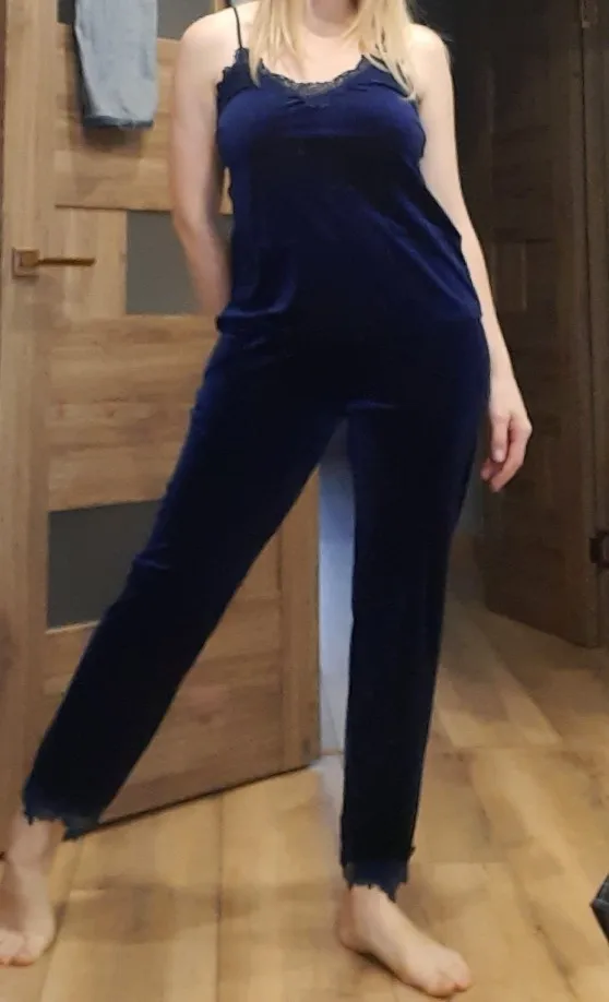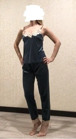 Ткань неплохая, приятная. Лекала - не очень. Впереди на штанах пузырь, штаны короткие (я брала размер s на свой 40-42 и рост 166). Может быть штаны задуманы короткими, но смотрится не очень. На счёт ночнушки и майки - ну пойдёт. На фото только были родовые лямки, а приехали чёрные((( на четвёрочку. Не в восторге, но пойдёт за эти деньги.