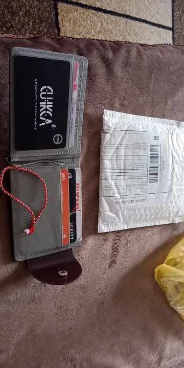 Заказ получила довольно быстро. Кошелек классный и удобный за счёт кнопки. Брала для мужа. Это уже второй. В этот раз взяла чёрный. До этого покупала коричневый и в пользовании он был года 2. Просто решила обновить ему кошелечек. Качество хорошее, зажим прекрасно держит деньги! К покупке рекомендую. Ещё продавец положил маленький подарочек в виде браслетика. Очень мило, спасибо.
