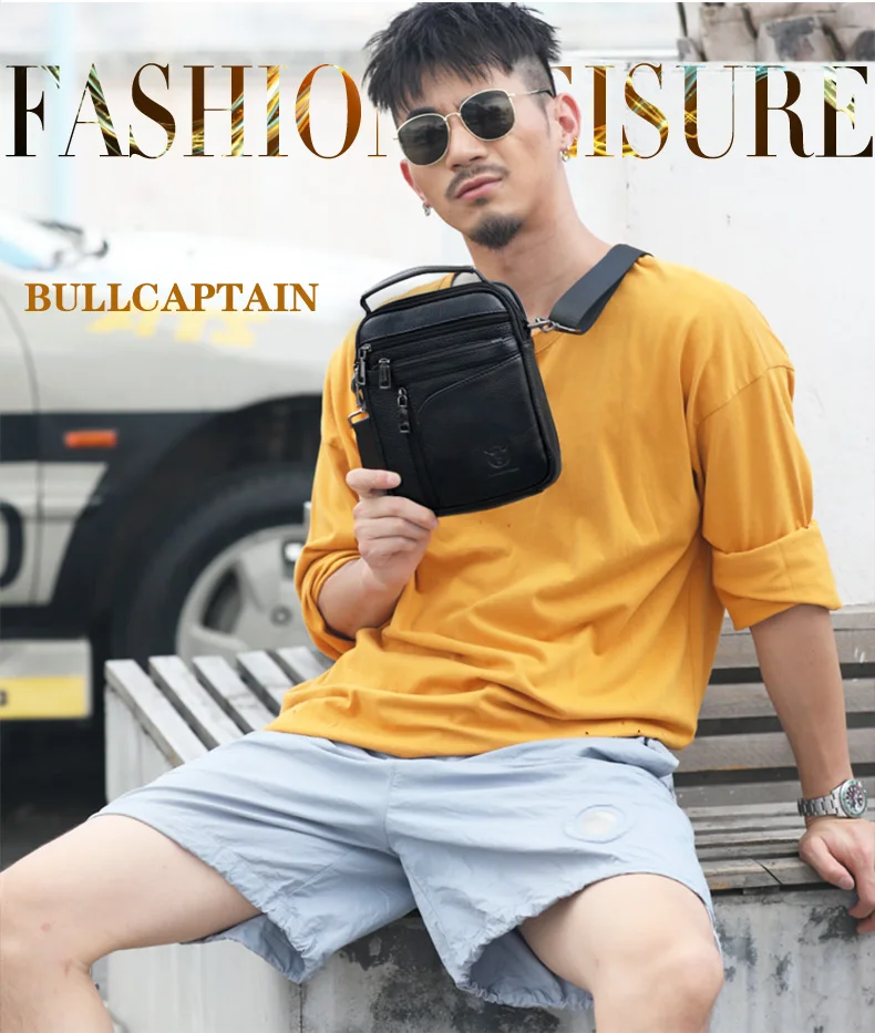 BULLCAPTAIN Новая мужская сумка из натуральной кожи, Мужская брендовая сумка через плечо, маленькие деловые сумки, мужские кожаные сумки через плечо