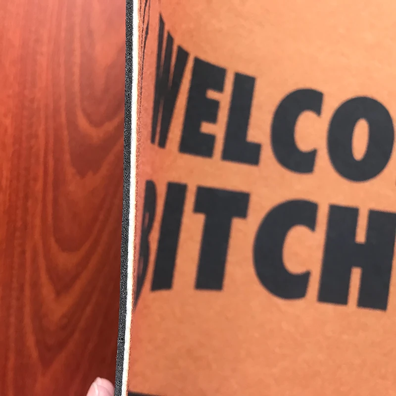Дизайн: надпись напечатана на поверхности коврика. Уникальная точка продажи этого коврика-это сам дизайн. Надеюсь, вам понравится дизайн.